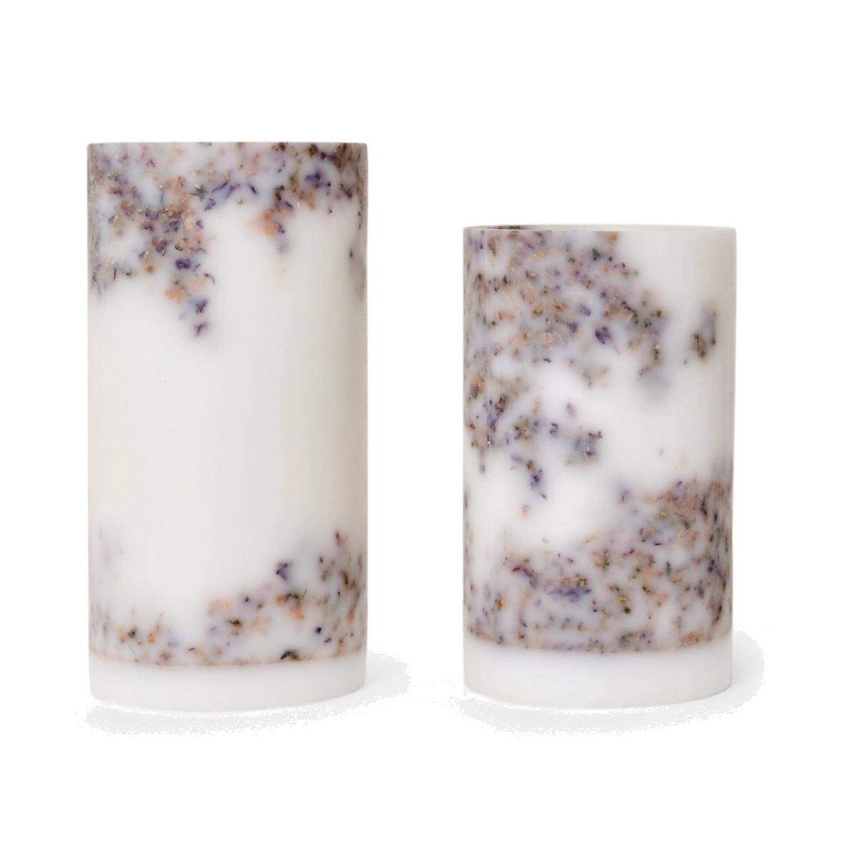 I love this set because of its versatile and calming aesthetic, perfect for creating a cosy yet sophisticated atmosphere. The lavender accents make them ideal for adding a touch of colour and texture to neutral interiors, such as minimalist or rustic styles. They work well in both small and larger spaces-place them on mantelpieces, side tables, or even as centrepieces for intimate dinners. Practical styling tips include grouping the smaller candle with other natural materials like wooden bowls or greenery to enhance the organic feel, or layering them with other candles for a relaxed, welcoming vignette. Their lantern form also makes them suitable for outdoor setups, adding a gentle glow to garden dinners or patios.