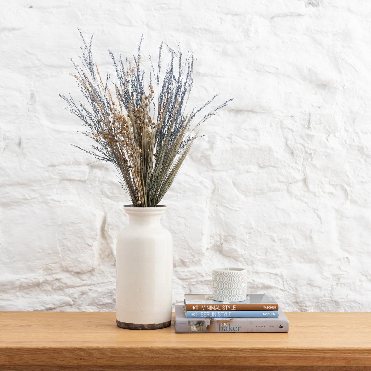 The lavender bouquet lends a lovely pop of colour and texture to both neutral and eclectic interiors. I love how its subtle purple tone can add a calming, natural vibe without needing the maintenance of fresh flowers. It works particularly well in understated Scandinavian or rustic schemes, sitting comfortably in ceramic vases or cluttered shelves. Practical styling tips include grouping it with other dried botanicals for a layered look or placing it in a tall, slim vase to emphasise its height. It’s a great choice for those wanting a year-round floral solution that enhances cosy corners or enhances a minimalist aesthetic with minimal fuss.