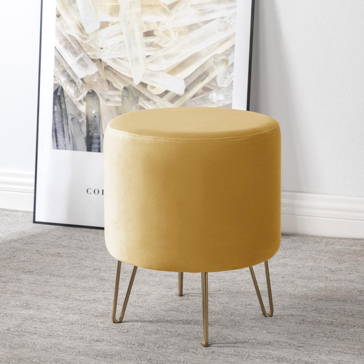 The Lavina footstool is the ideal way to add a touch of colour to your home. The stool is constructed from solid hardwood which is foam covered for comfort. The upholstery is velvet and is available in a stunning array of 8 vibrant colours, all complimented by brass-coloured steel legs.