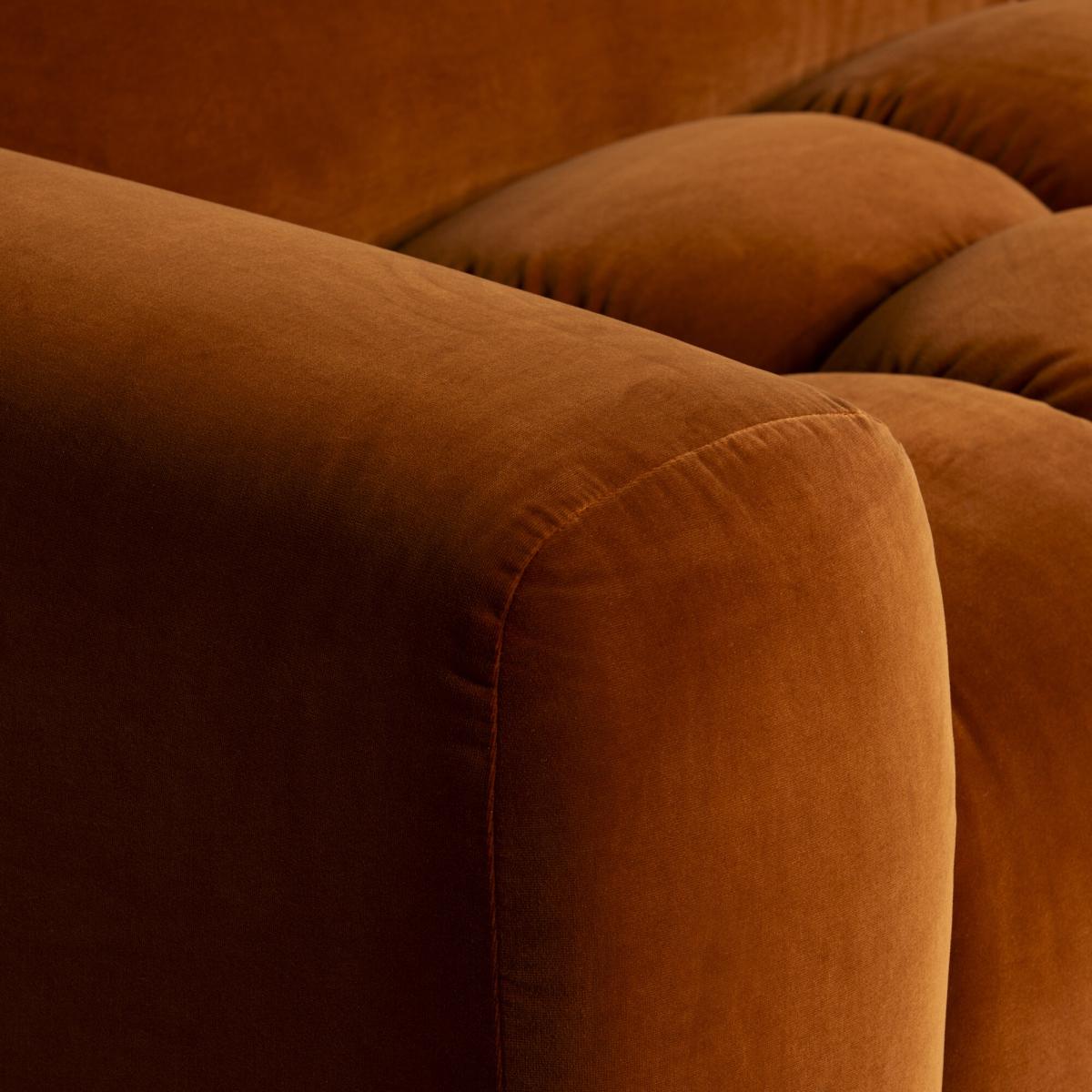 The Lavinia 3 Seater in orange fabric is a bold statement piece that works beautifully in modern or eclectic interiors. I love how its rich, warm hue adds vibrancy and character to a space, making it a focal point in a living room. Its plush velvet-like texture invites comfort, while its clean lines lend a contemporary edge. For styling, pair it with neutral or muted tones to let the sofa really stand out, and add complementary accessories like textured cushions or patterned throws for visual interest. It also works well with both minimalist furniture and more layered, styled interiors - just be mindful of the overall colour palette to ensure the look feels cohesive. Practical tip: its inviting colour can also serve as a conversational starter, so placing it in a social or open-plan area maximises its impact.