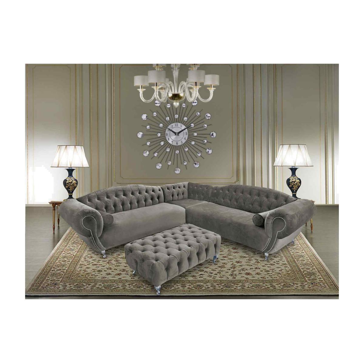 A stunning designer corner sofa handmade in the UK comes with an elegant footstool, this showstopping plush velour velvet fabric designer corner sofa will add a grand look to any living room.