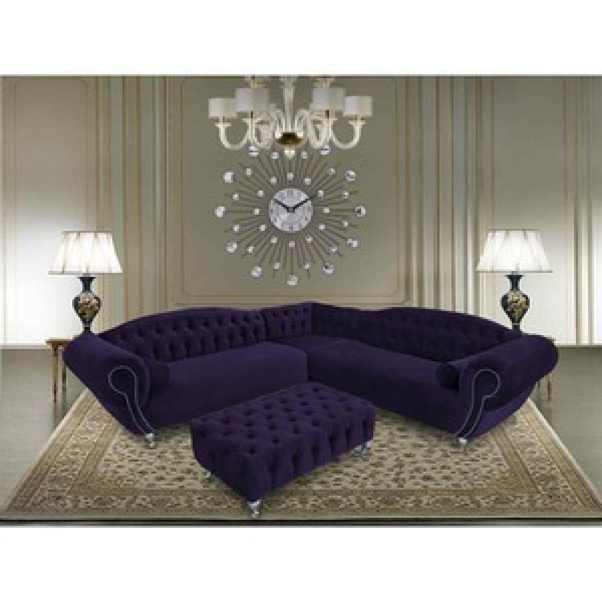 A stunning designer corner sofa handmade in the UK comes with an elegant footstool, this showstopping plush velour velvet fabric designer corner sofa will add a grand look to any living room.