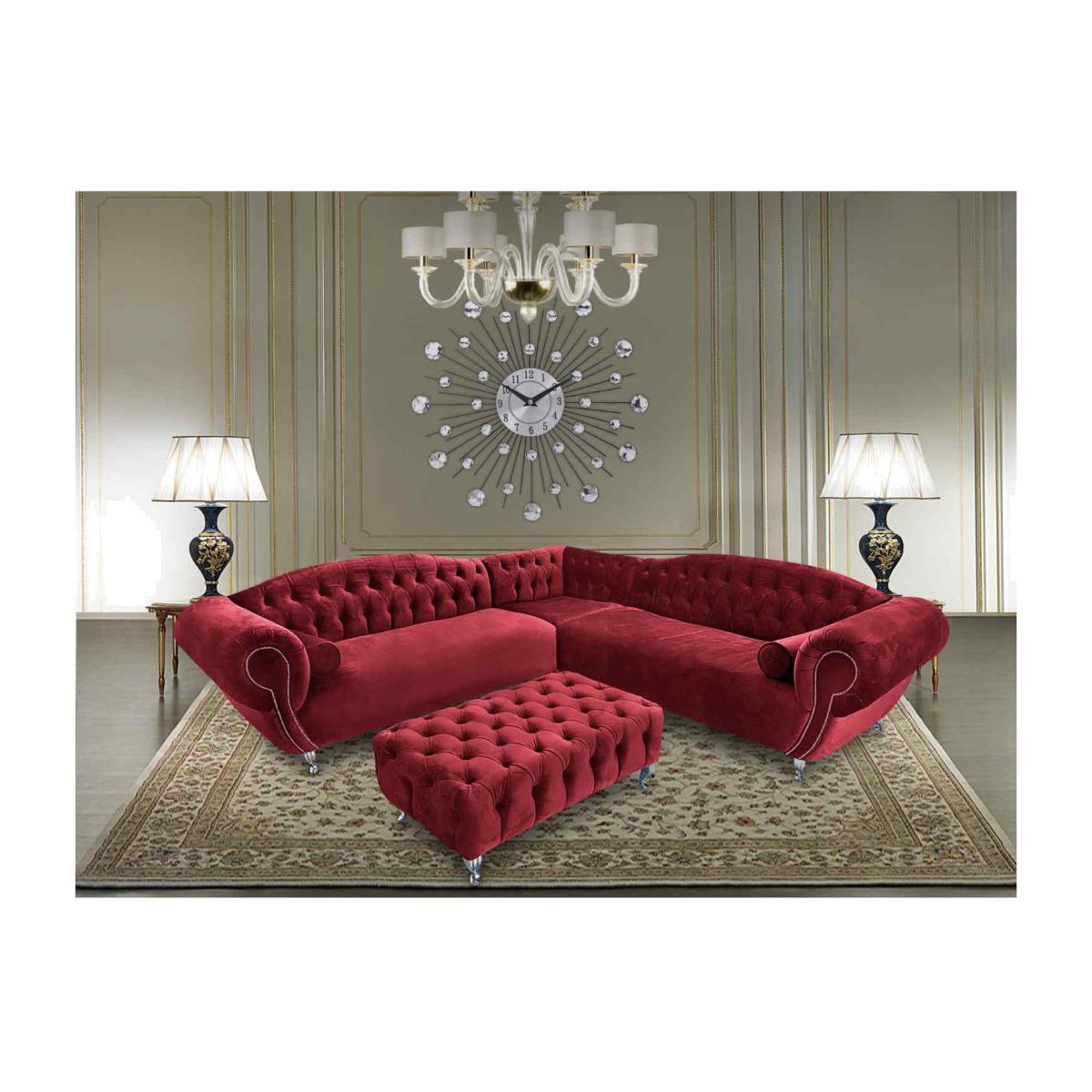 Lavis Corner Sofa with Footstool in Velour Fabric - Red