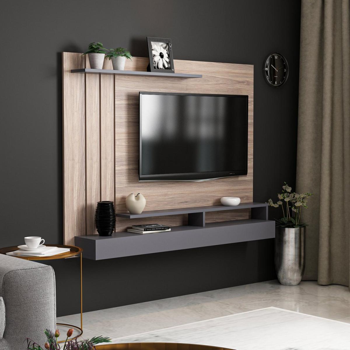 This floating entertainment unit creates a sophisticated theatrical vibe for your living room. The entertainment unit offers an organized space for your TV and accessories. The media centre comes with fixing accessories to conveniently hang your TV and save floor space!