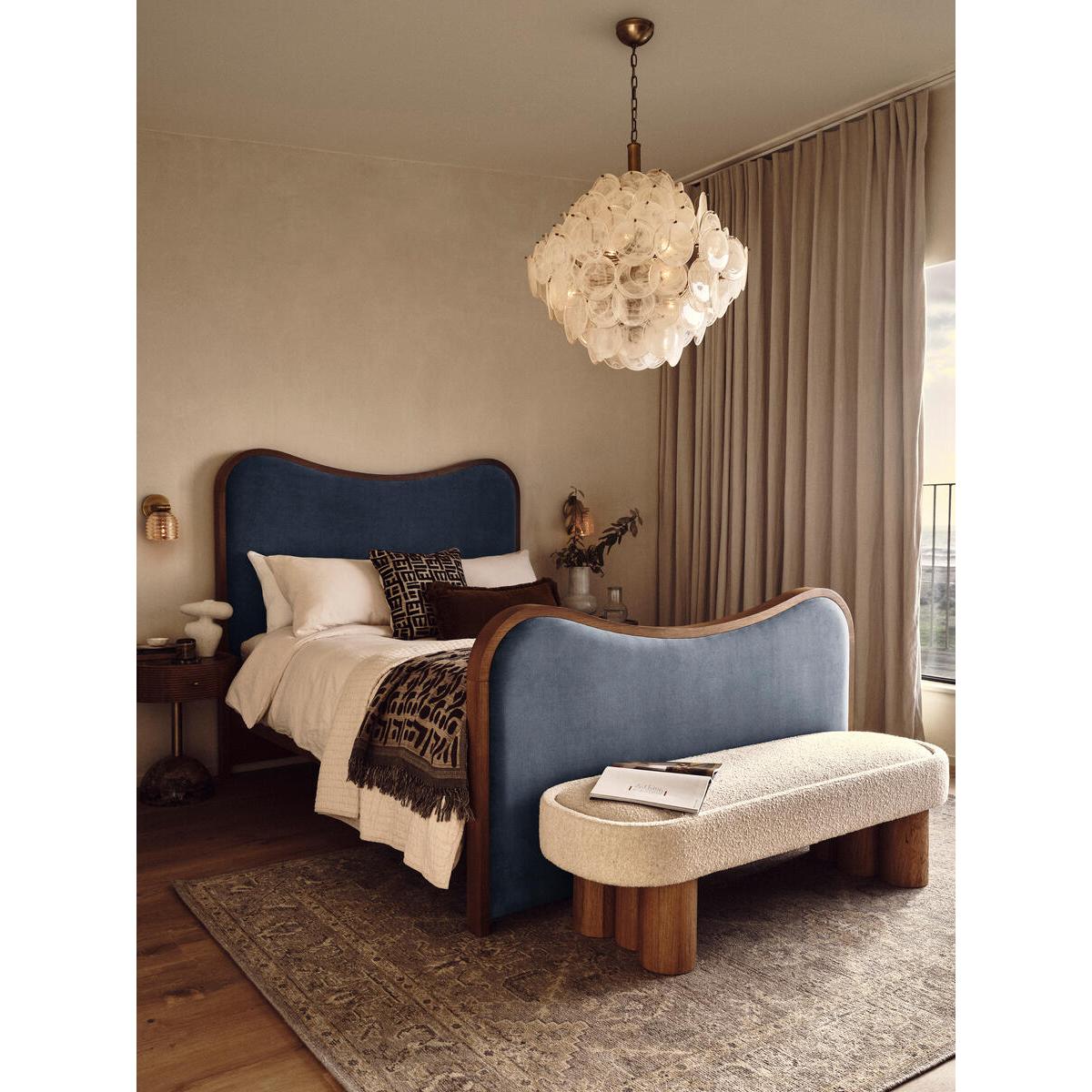 As seen in Soho House Rome, our Lawrence bed has a show wood oak frame in a warm, mid-tone finish, offset with a curvaceous headboard and footboard. Upholstered in cotton velvet, this style will bring comfort and softness to your surroundings, while reshaping your bedroom space. King-size upholstered bed Show wood oak frame in mid-tone finish Curvaceous headboard and footboard Upholstered velvet elements Available in other sizes Pair with our SH Hypnos King Mattress As seen in Soho House Rome