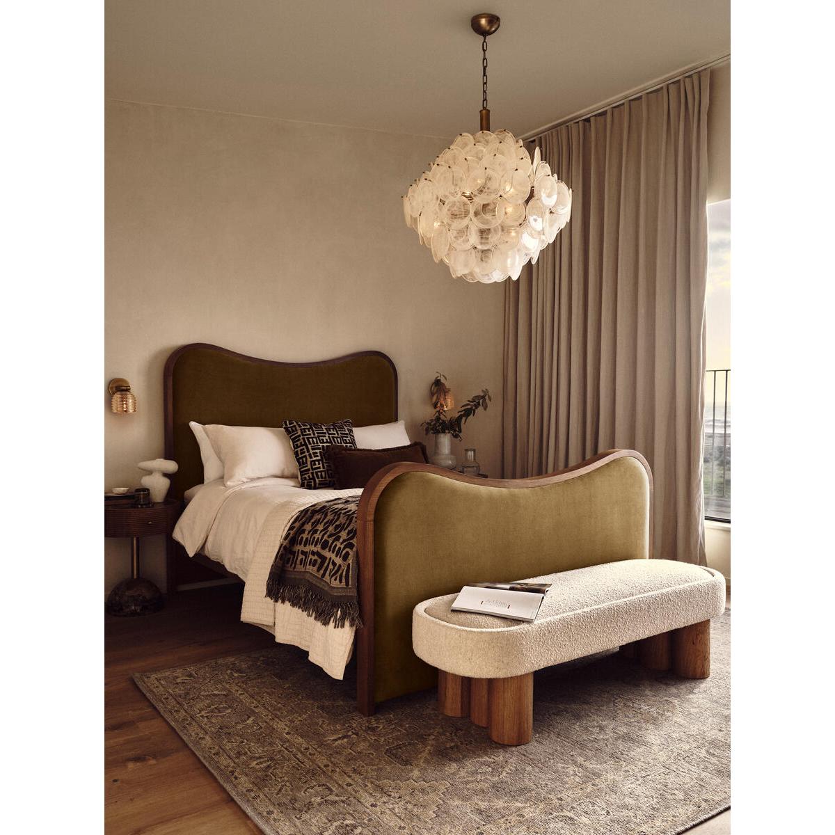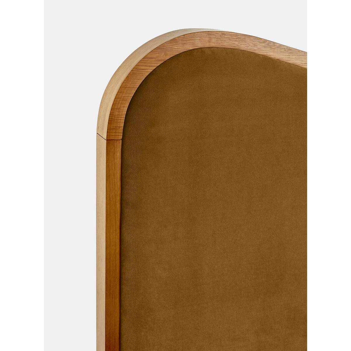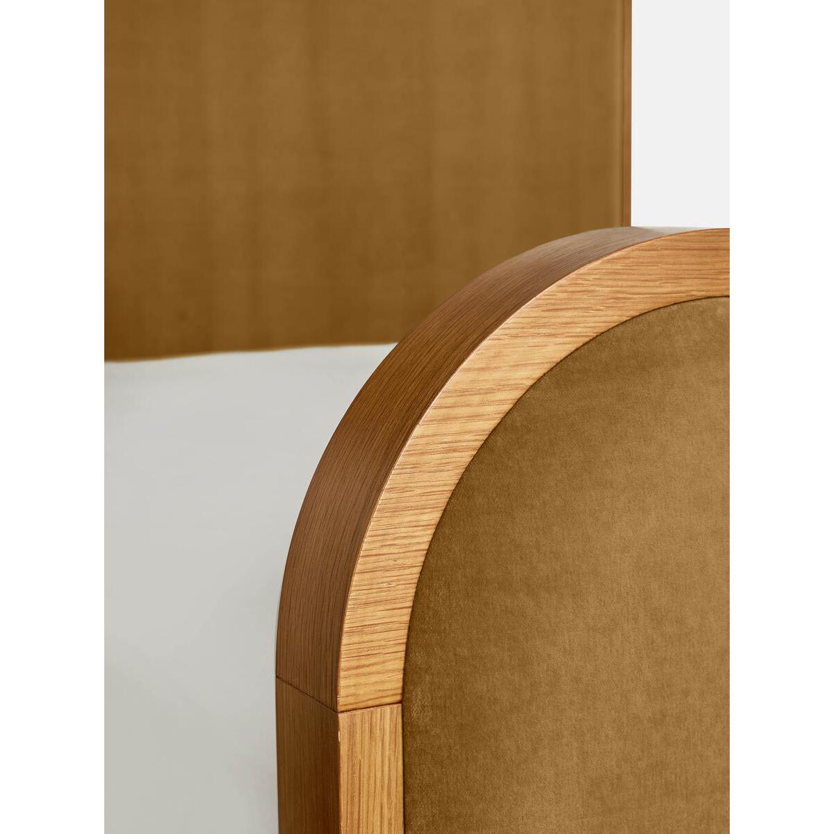 As seen in Soho House Rome, our Lawrence bed has a show wood oak frame in a warm, mid-tone finish, offset with a curvaceous headboard and footboard. Upholstered in cotton velvet, this style will bring comfort and softness to your surroundings, while reshaping your bedroom space. Super-king upholstered bed Show wood oak frame in mid-tone finish Curvaceous headboard and footboard Upholstered velvet elements Available in other sizes Pair with our SH Hypnos Super King Mattress As seen in Soho House Rome