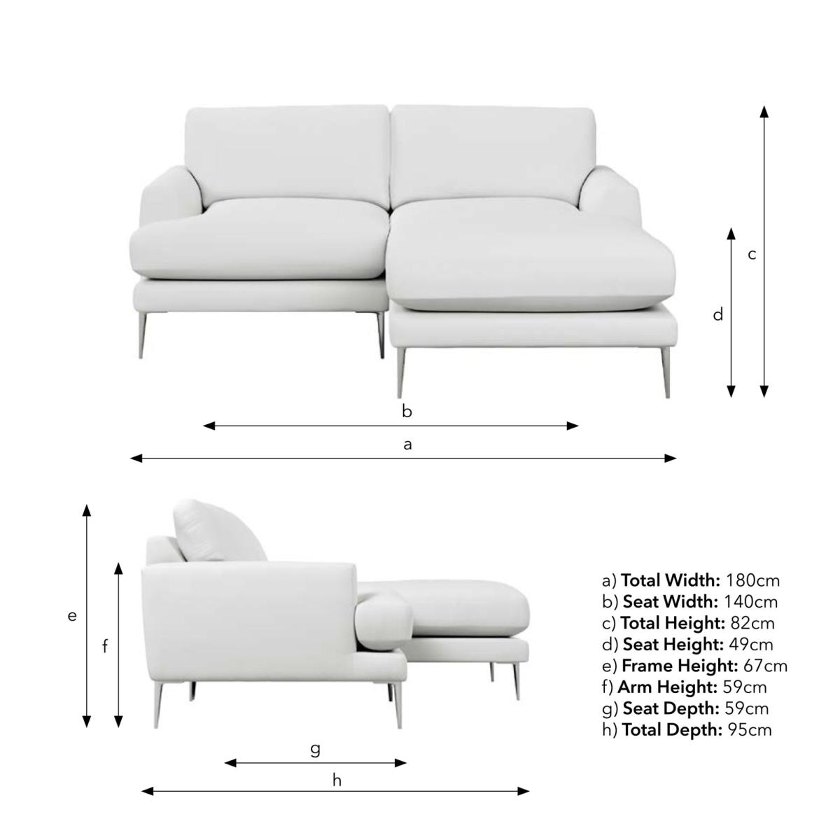 * Soft upholstery * Square Arms * Fixed back * Foam and Fibre filled seat * Available in left or right hand facing Stretch out in style with the Lawson Corner Chaise Sofa. Designed for ultimate relaxation, it boasts a soft chunky tonal weave fabric, supportive foam and fibre-filled seat, and a comfy T-arm cushion shape. Square arms and sleek metal legs complete the modern look.