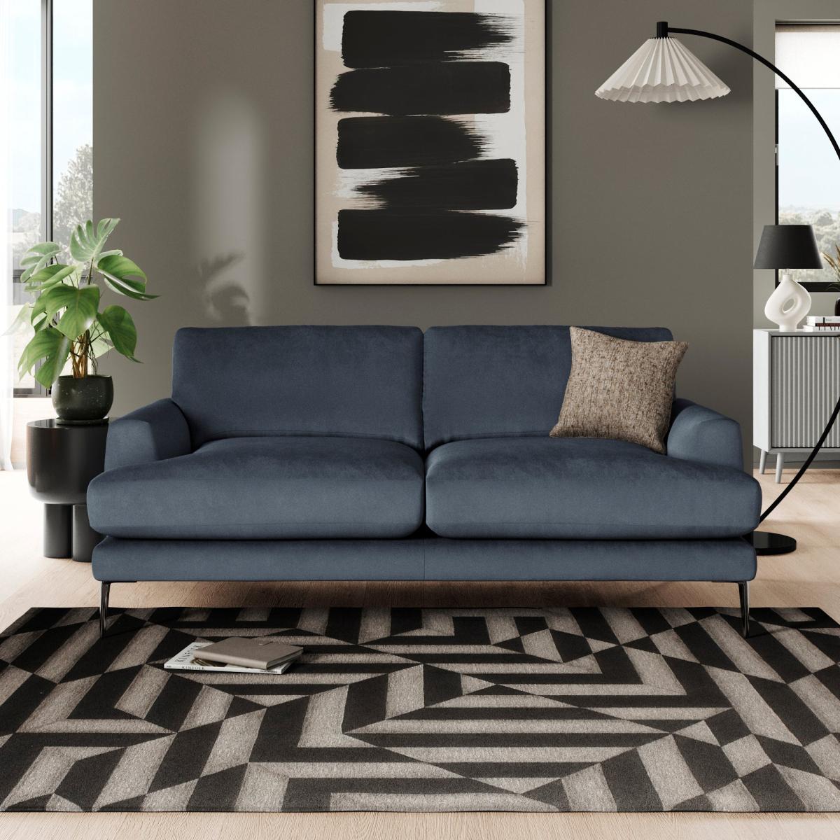 * Soft upholstery * Square Arms * Fixed back * Foam and Fibre filled seat Designed for relaxed lounging with a touch of glamour, the Lawson 3 Seater Sofa features a luxuriously soft matte plush velvet finish. The foam and fibre-filled seat provides sink-in comfort, while modern square arms and sleek metal legs complete the chic look.