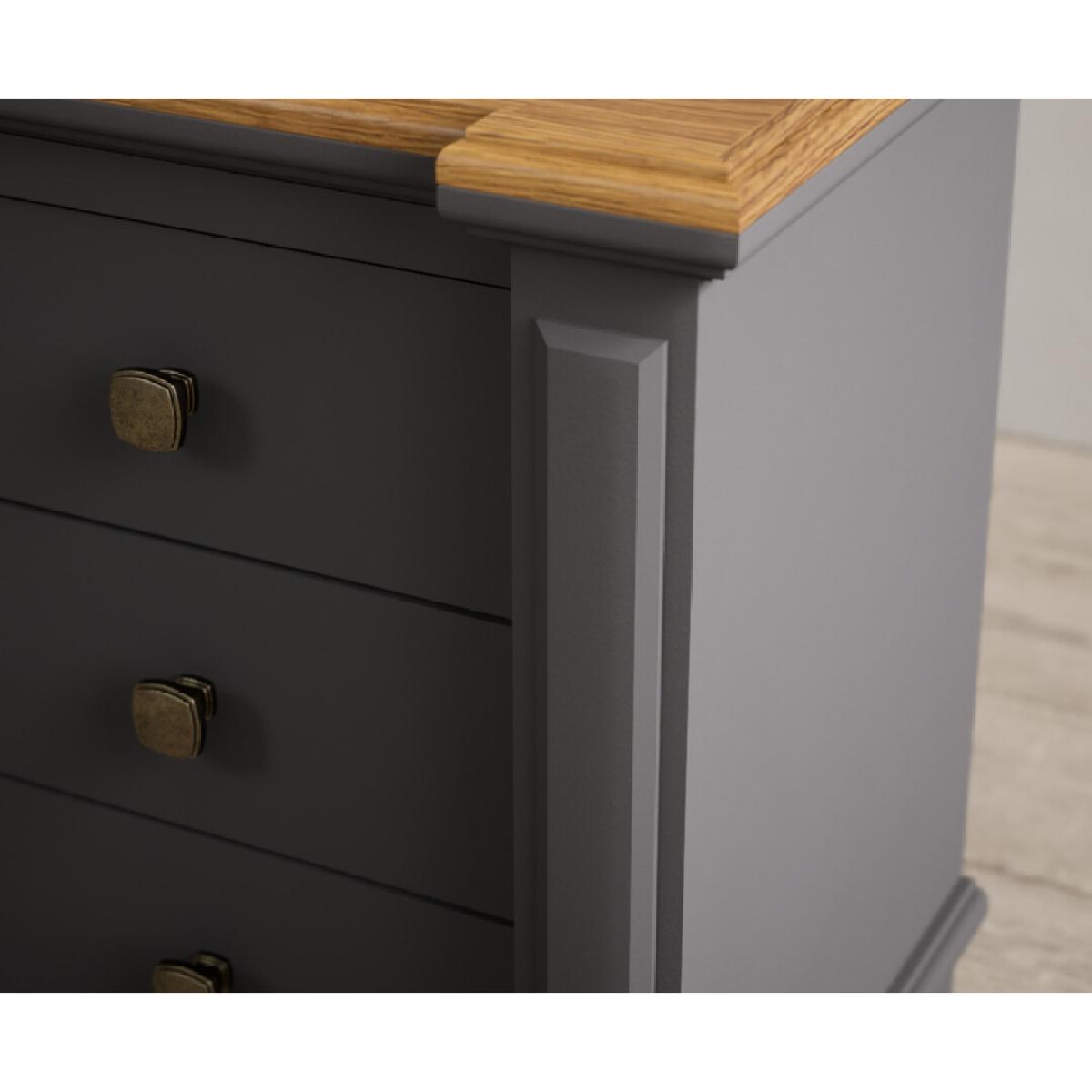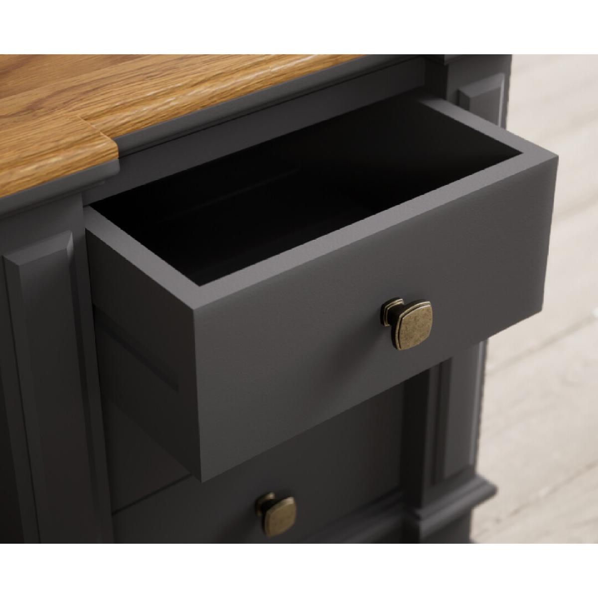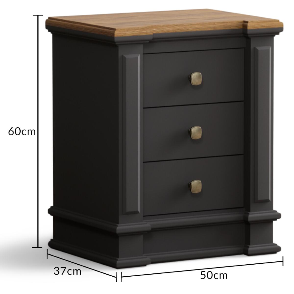 The Lawson Charcoal Grey 3 Drawer Bedside Chest is crafted from grey painted solid hardwood, with a 100% solid oak top and three Dovetail drawers