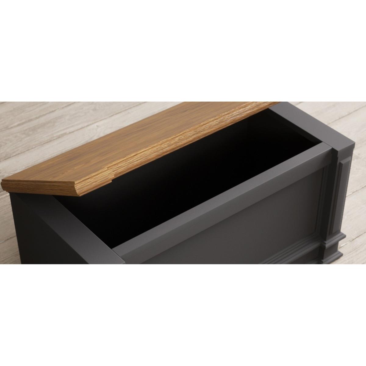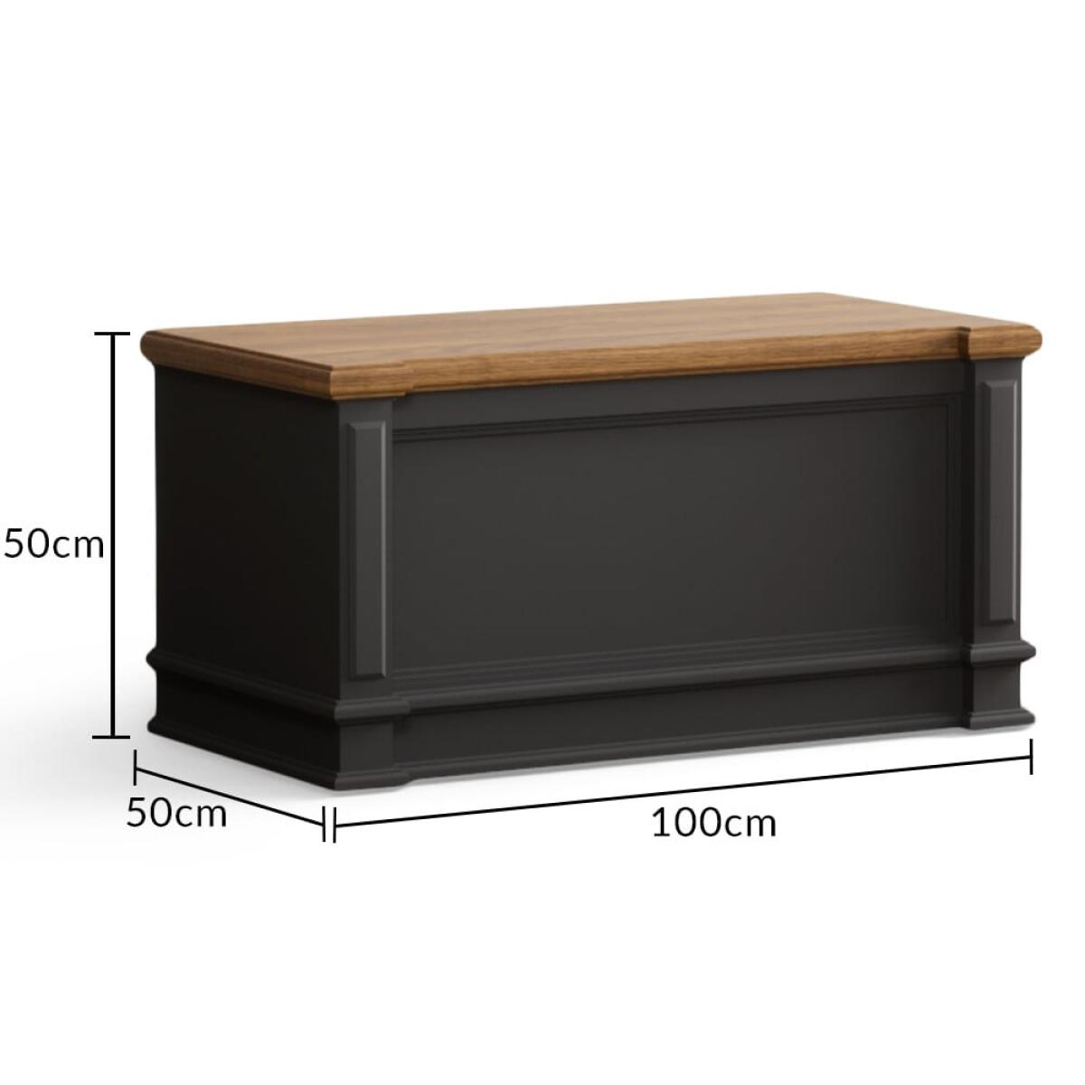 The Lawson Charcoal Grey Blanket Box has a charcoal grey painted solid hardwood frame and a solid oak top, matching with other pieces from the Lawson Charcoal Grey collection.