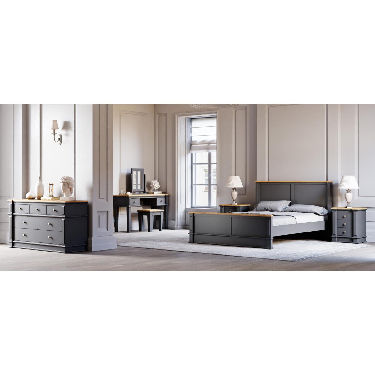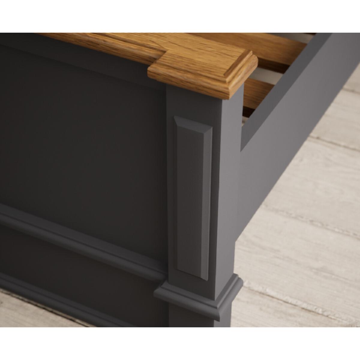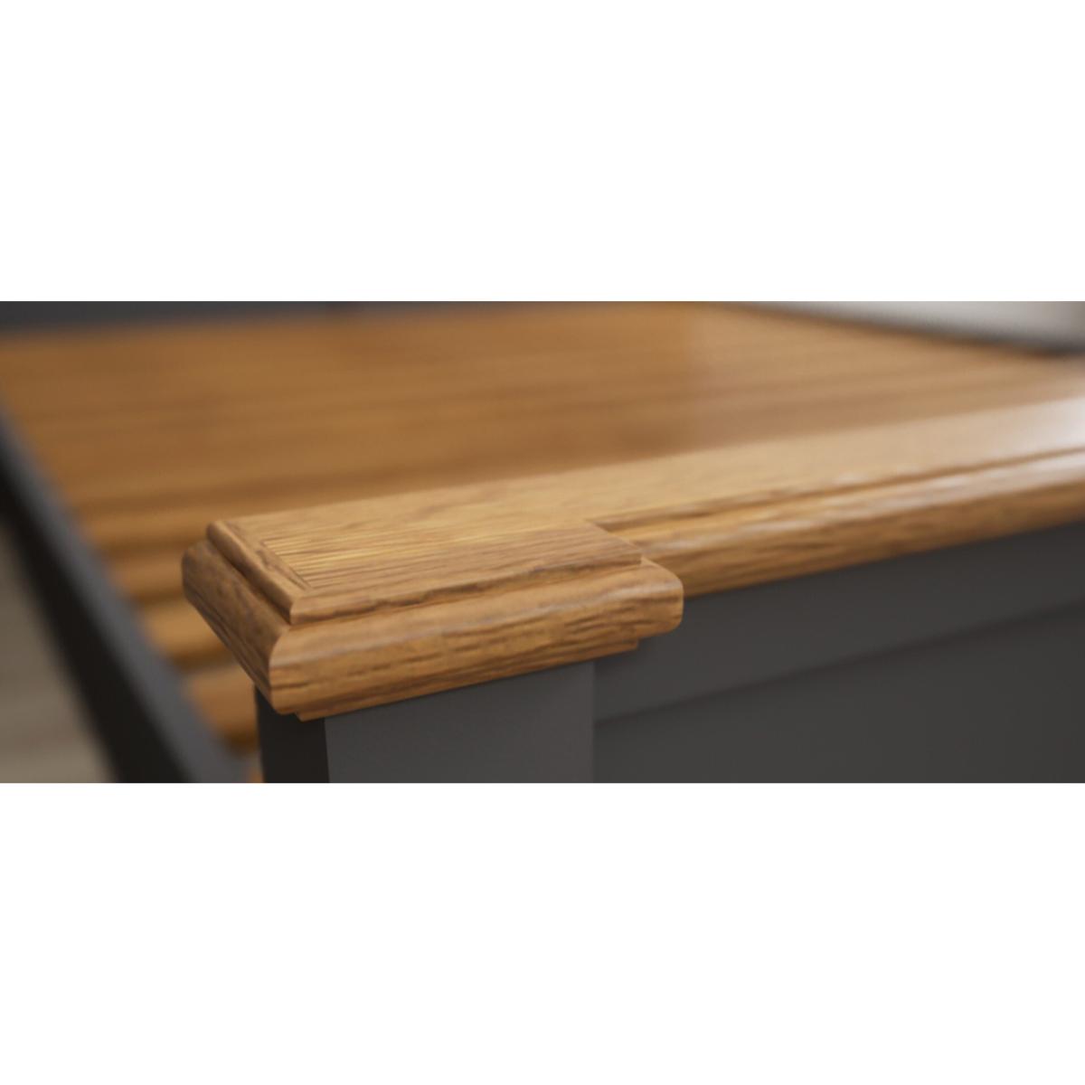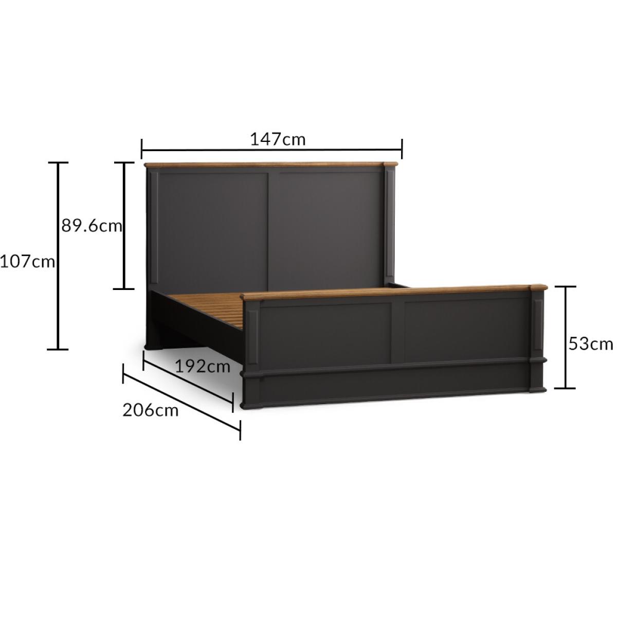 The Lawson Charcoal Grey Double Bed features a grey painted solid hardwood frame with solid oak tops on the footboard and headboard, complete with sturdy slats.