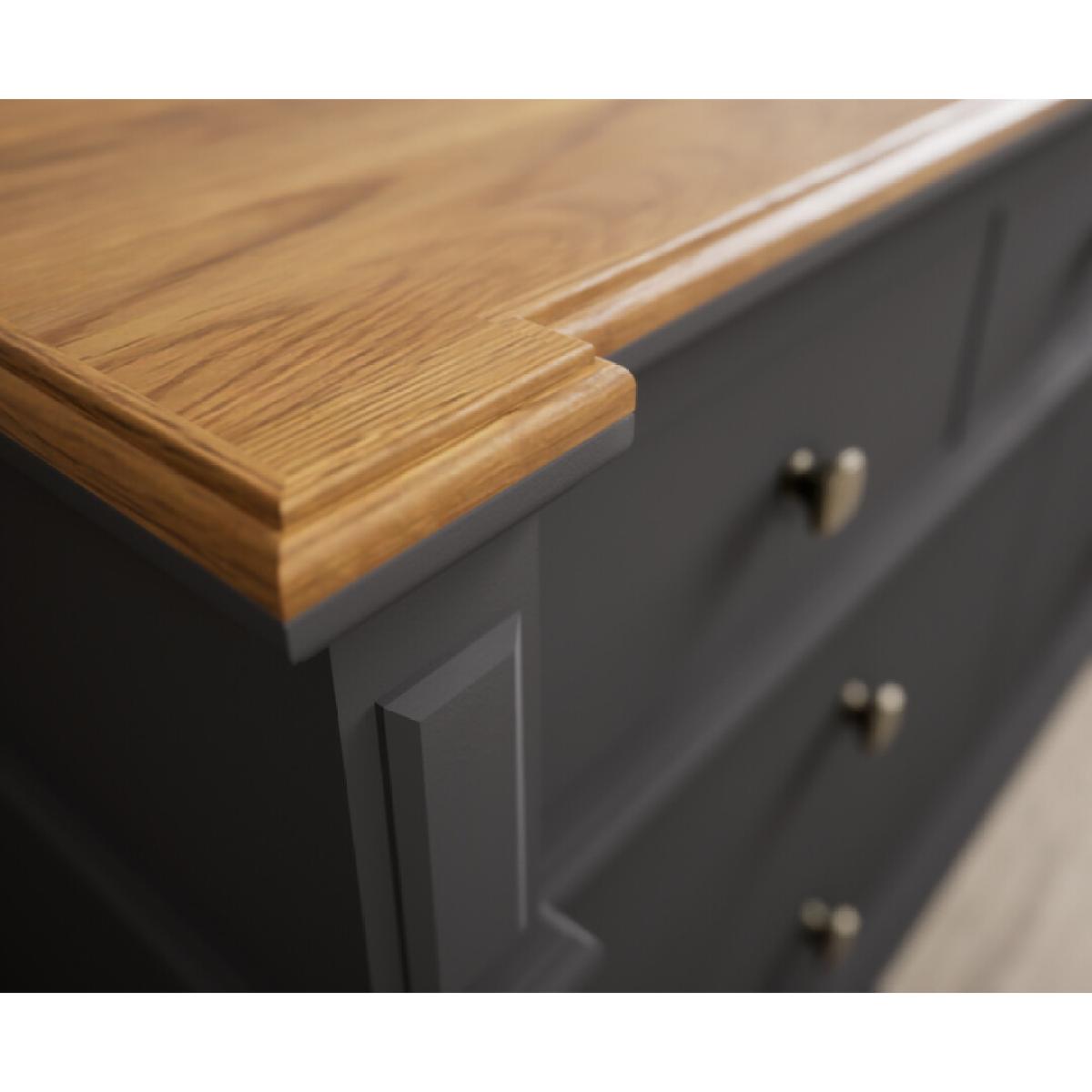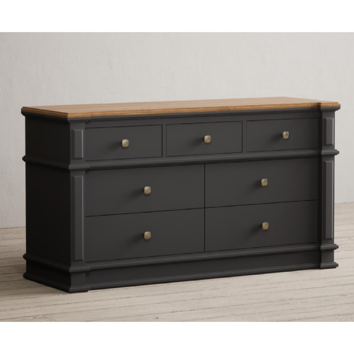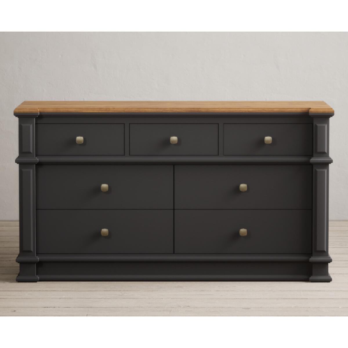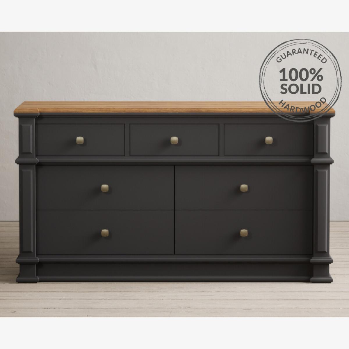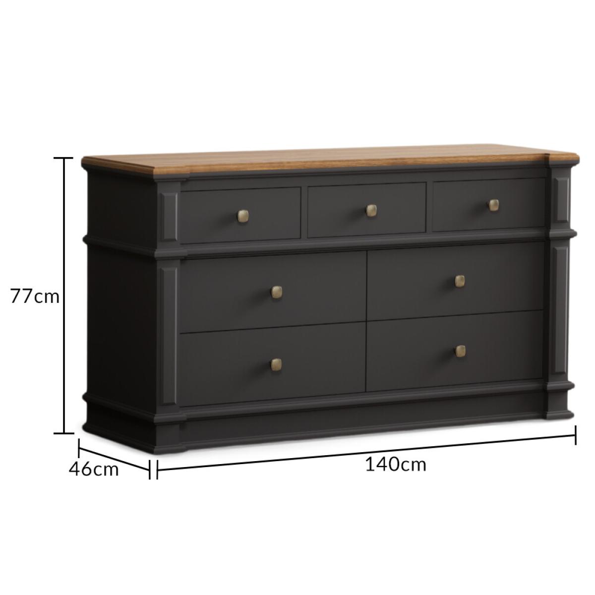 The Lawson Charcoal Grey Wide Chest of Drawers is crafted from charcoal grey painted solid hardwood with a solid oak top, complete with 7 Dovetail drawers on wooden runners.
