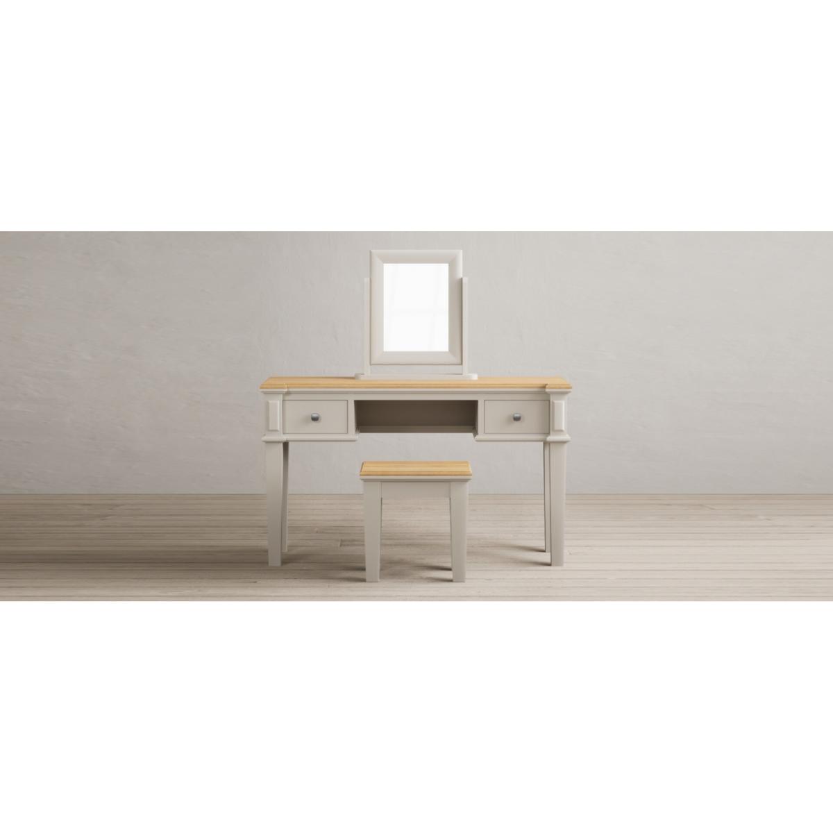 The Lawson Oak and Soft White Dressing Table Stool features a 100% solid oak seat and solid hardwood frame with a soft white painted finish.