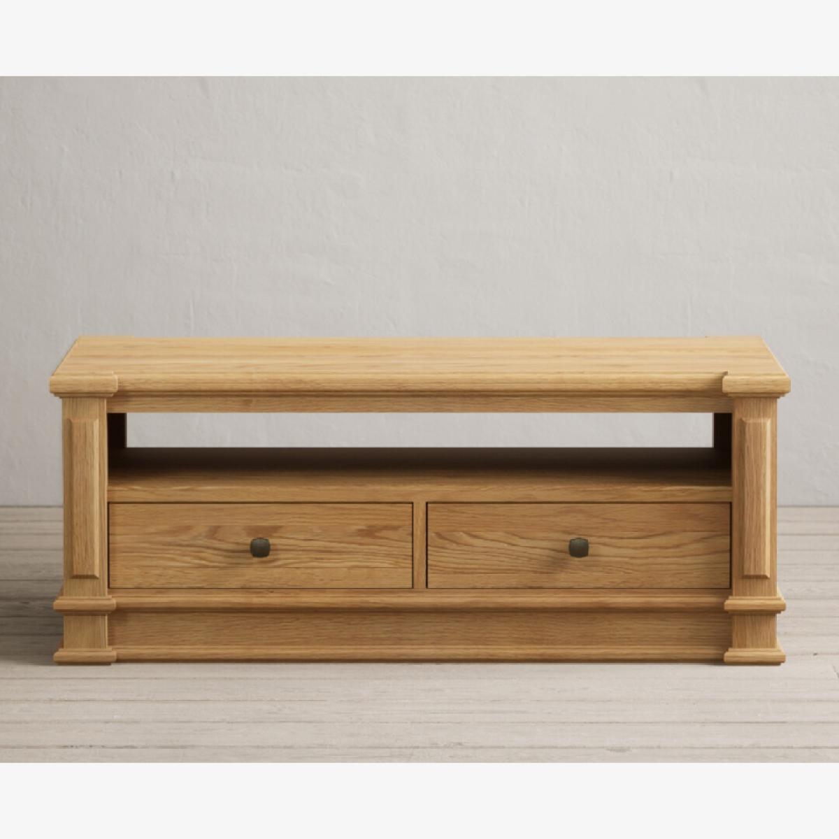 The Lawson Solid Oak Coffee Table is crafted from 100% solid oak with a waxed finish, complete with four Dovetail drawers.