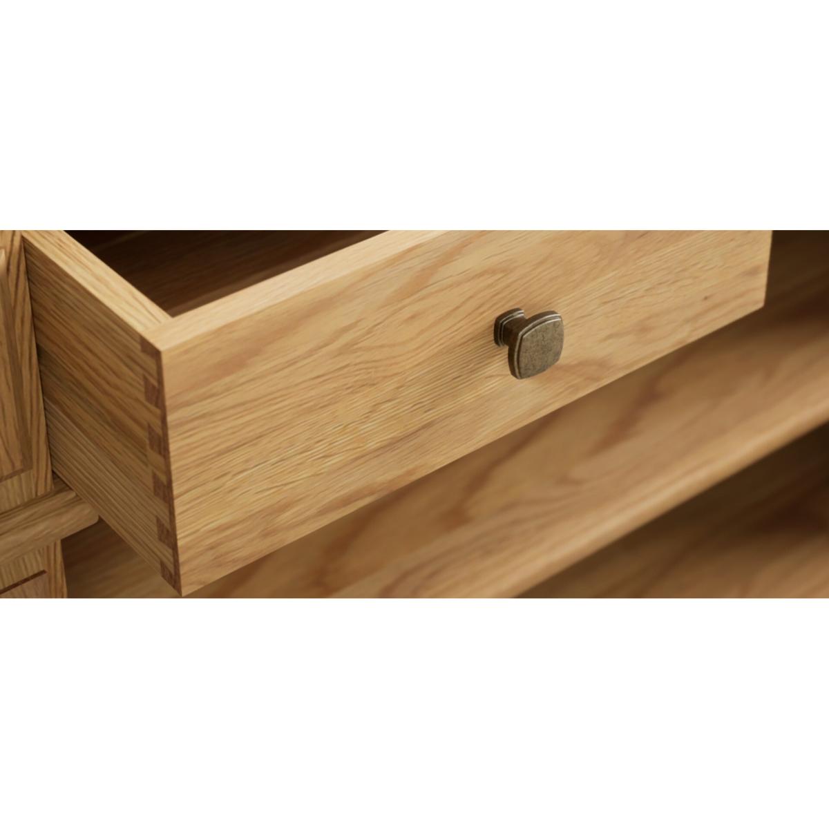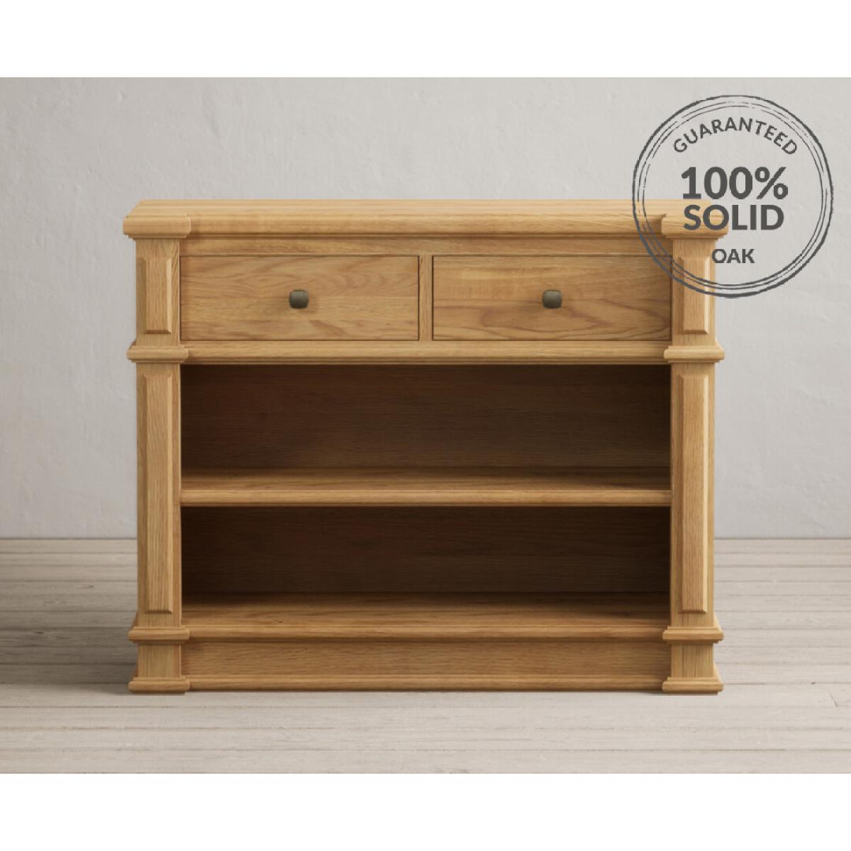 The Lawson Solid Oak Console Table is crafted from 100% solid oak, complete with a shelf and two Dovetail drawers.