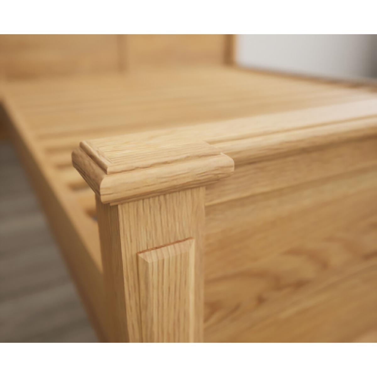 I love this solid oak bed for its timeless and versatile appeal - it adds warmth and craftsmanship to both classic and contemporary interiors. Its substantial, natural wood finish works particularly well in neutral or Scandinavian-inspired schemes, where it can serve as a calming focal point. To style it effectively, consider pairing it with crisp white or soft pastel bedding for a fresh look, or layered textures like knitted throws and linen cushions for added comfort. It's sturdy enough to anchor a minimalist room, but can also be complemented with vintage or rustic accessories to create a more lived-in feel. Practical tip: this bed's neutral tone makes it easy to swap out textiles seasonally or update the space without a complete overhaul.