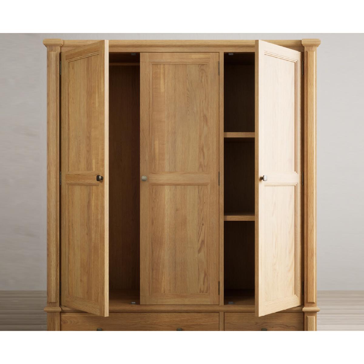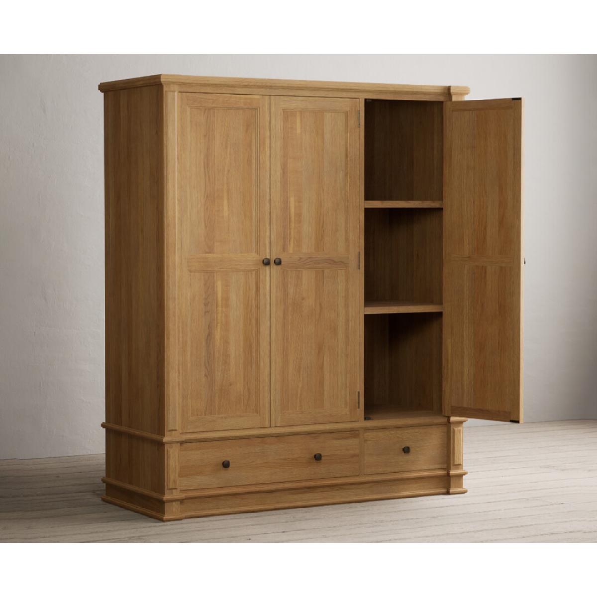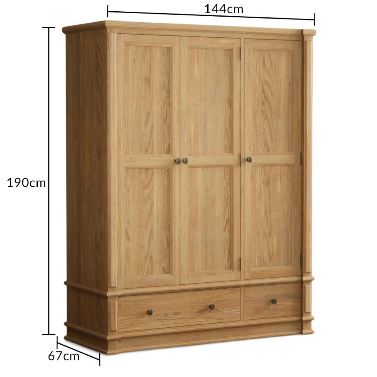 The Lawson Solid Oak Triple Wardrobe has been crafted from 100% solid oak, with hanging space, shelves and Dovetail drawers.