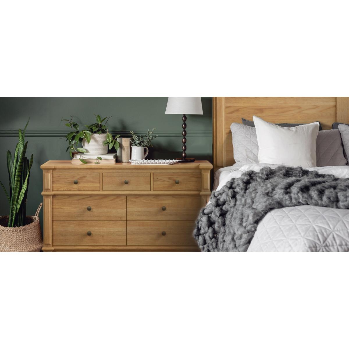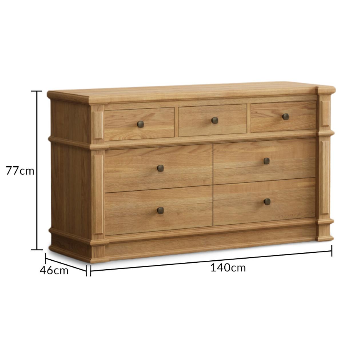 The Lawson Solid Oak Wide Chest of Drawers is crafted from 100% solid oak, complete with 7 Dovetail drawers on wooden runners.