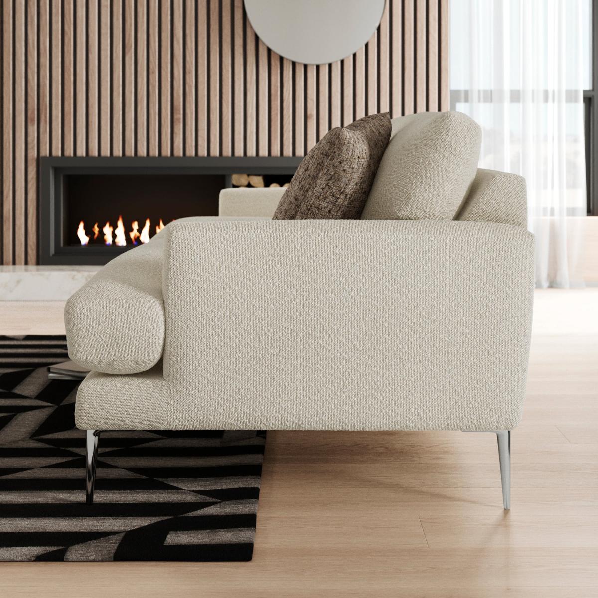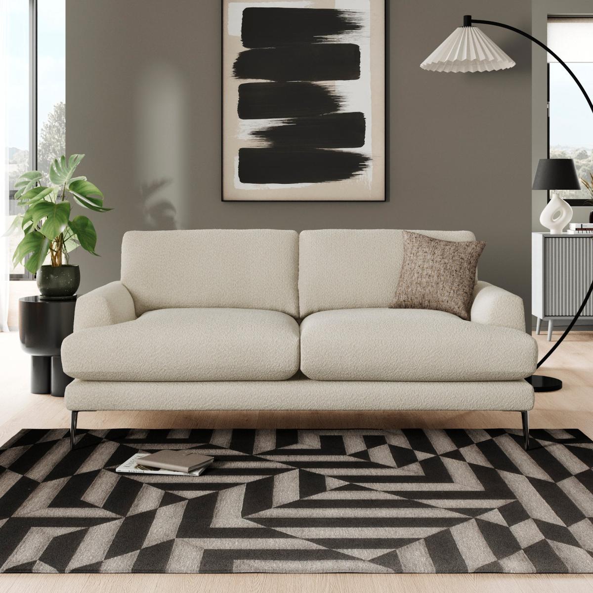 * Textured upholstery * Square Arms * Fixed back * Foam and Fibre filled seat With its soft tonal boucle fabric and modern design, the Lawson 3 Seater Sofa is the perfect blend of style and comfort. The foam and fibre-filled seat provides just the right level of support, while sleek metal legs and square arms add a fresh, contemporary edge.