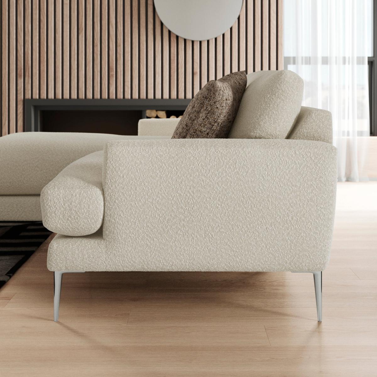 * Textured upholstery * Square Arms * Fixed back * Foam and Fibre filled seat * Available in left or right hand facing Stretch out in comfort with the Lawson Corner Chaise Sofa. The tonal boucle fabric brings a rich texture and inviting warmth, while modern square arms and sleek metal legs keep things effortlessly stylish. Designed with a foam and fibre-filled seat and a T-arm cushion for maximum comfort, this is the ultimate lounging spot.