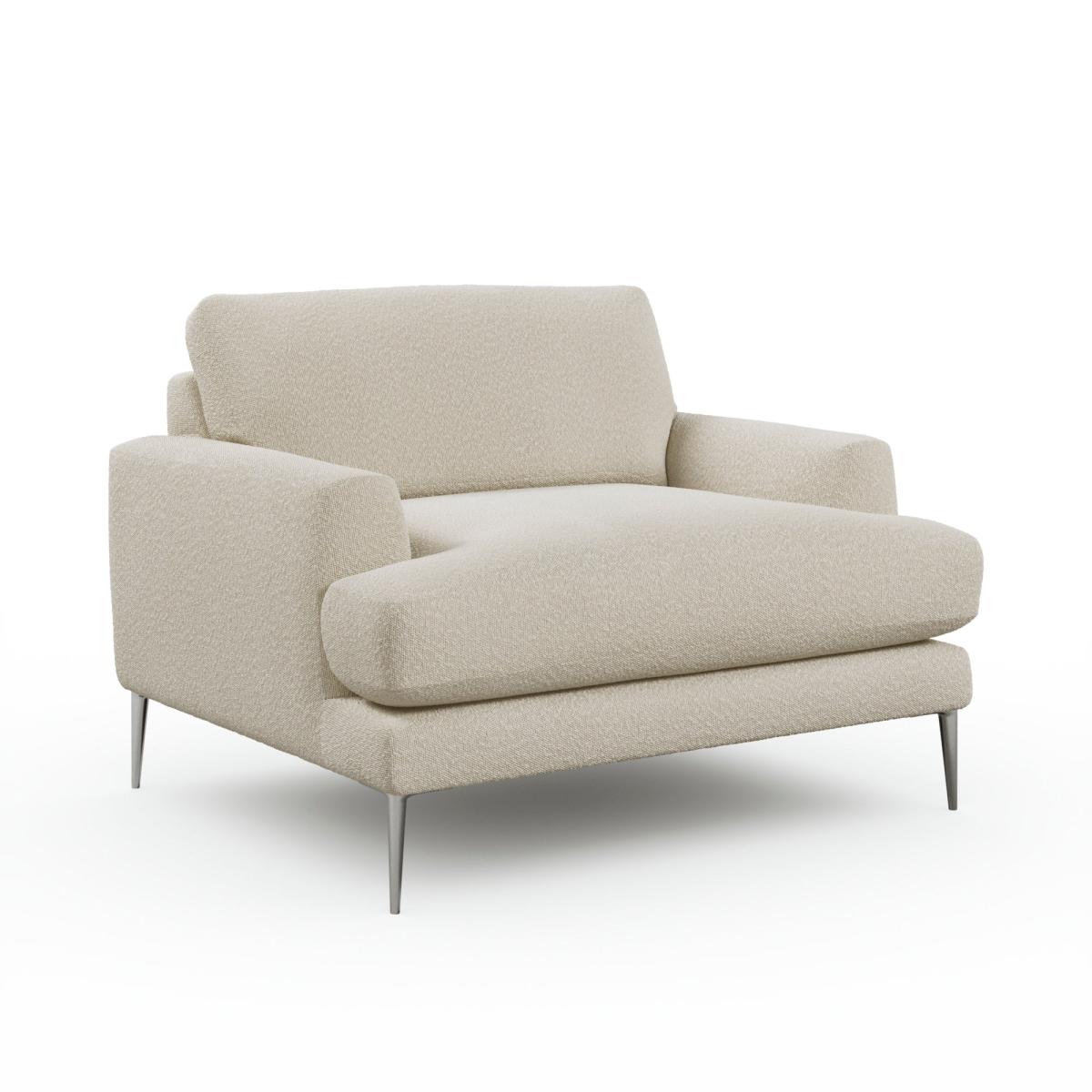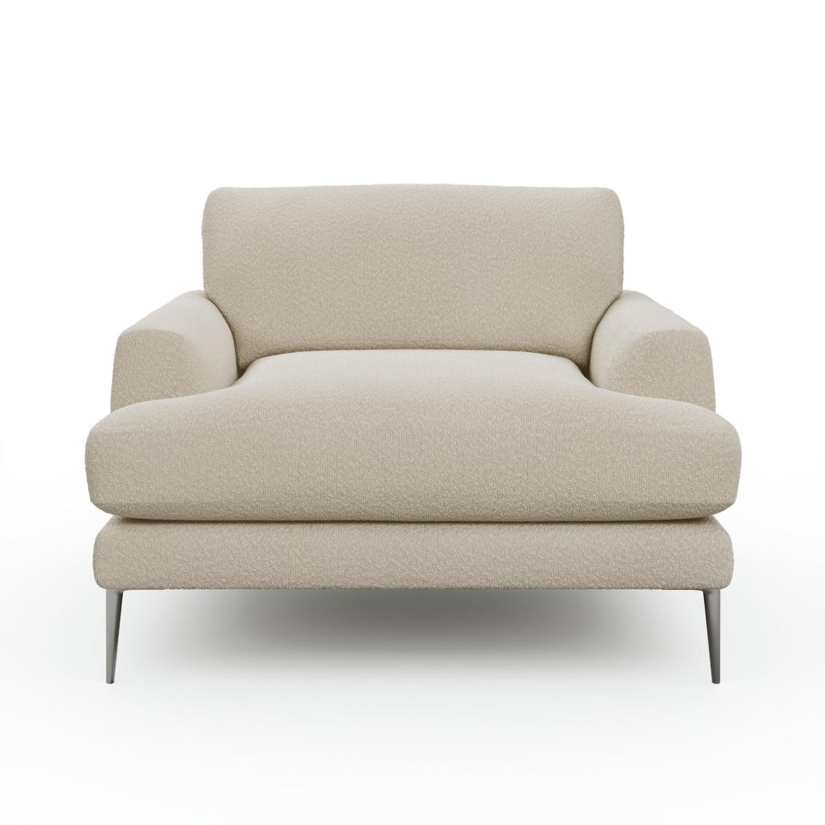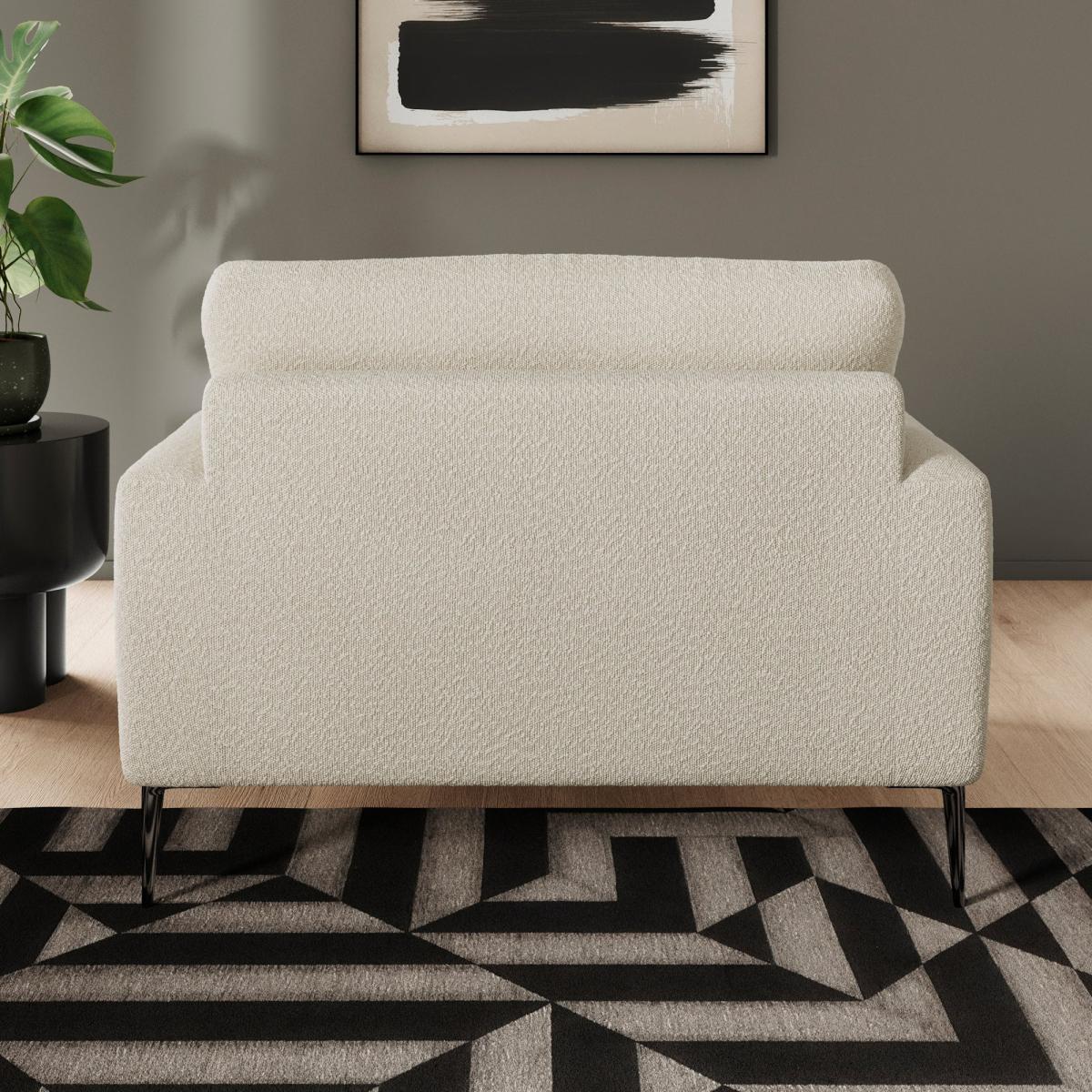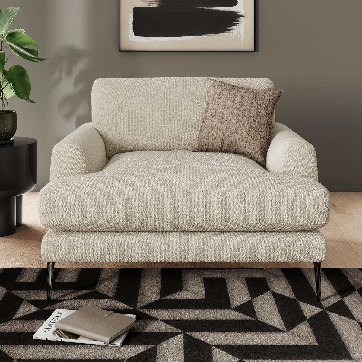 * Textured upholstery * Square Arms * Fixed back * Foam and Fibre filled seat Soft, stylish, and effortlessly cosy—the Lawson Snuggle Chair in tonal boucle is a dream come true. The rich texture of the fabric adds a chic, contemporary feel, while modern square arms and metal legs bring a sleek touch. Designed with a foam and fibre-filled seat and a T-arm cushion for all-day comfort.