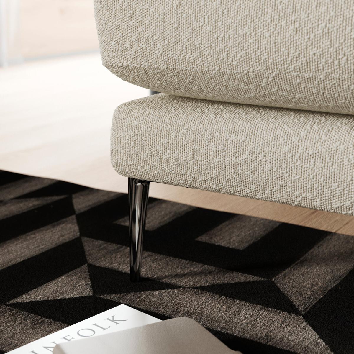I love this little snuggle chair for its versatile and contemporary look. Its neutral tonal boucle fabric makes it an easy addition to a range of interiors, from modern minimalist spaces to cosy, eclectic lounges. It works particularly well in smaller rooms or open-plan living areas where space is limited but comfort is key. For styling, consider pairing it with soft throw cushions in contrasting textures or colours to add depth, and position it near a statement piece like a fireplace or a window seat for optimal cosy vibes. Its sleek legs and understated silhouette make it a practical choice for those looking to add comfort without overwhelming the space.