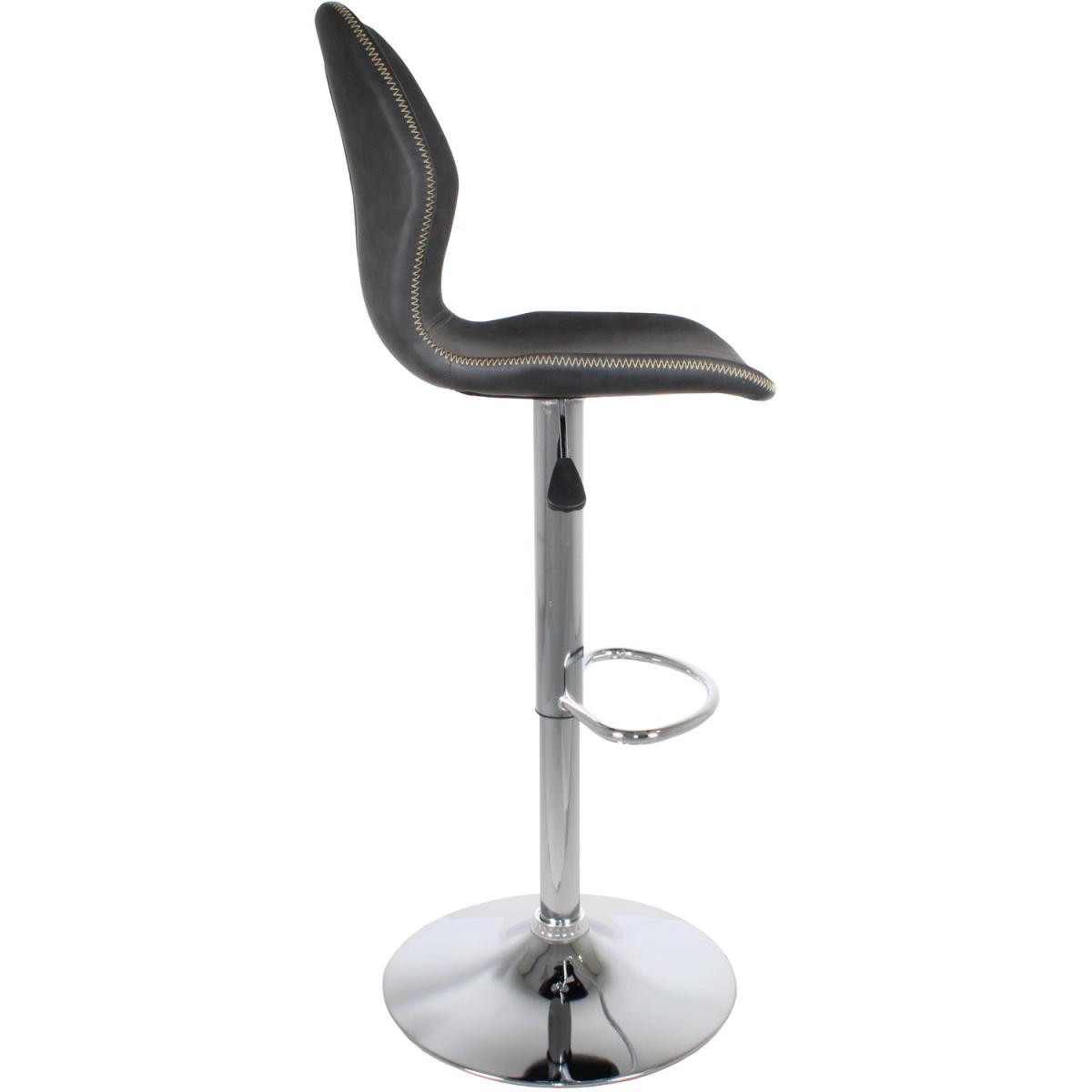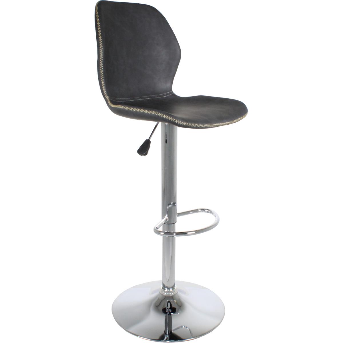 A stylishly designed bar stool with rounded contours and a strong stitching feature. Featuring a gas lift mechanism on a chrome pedestal.