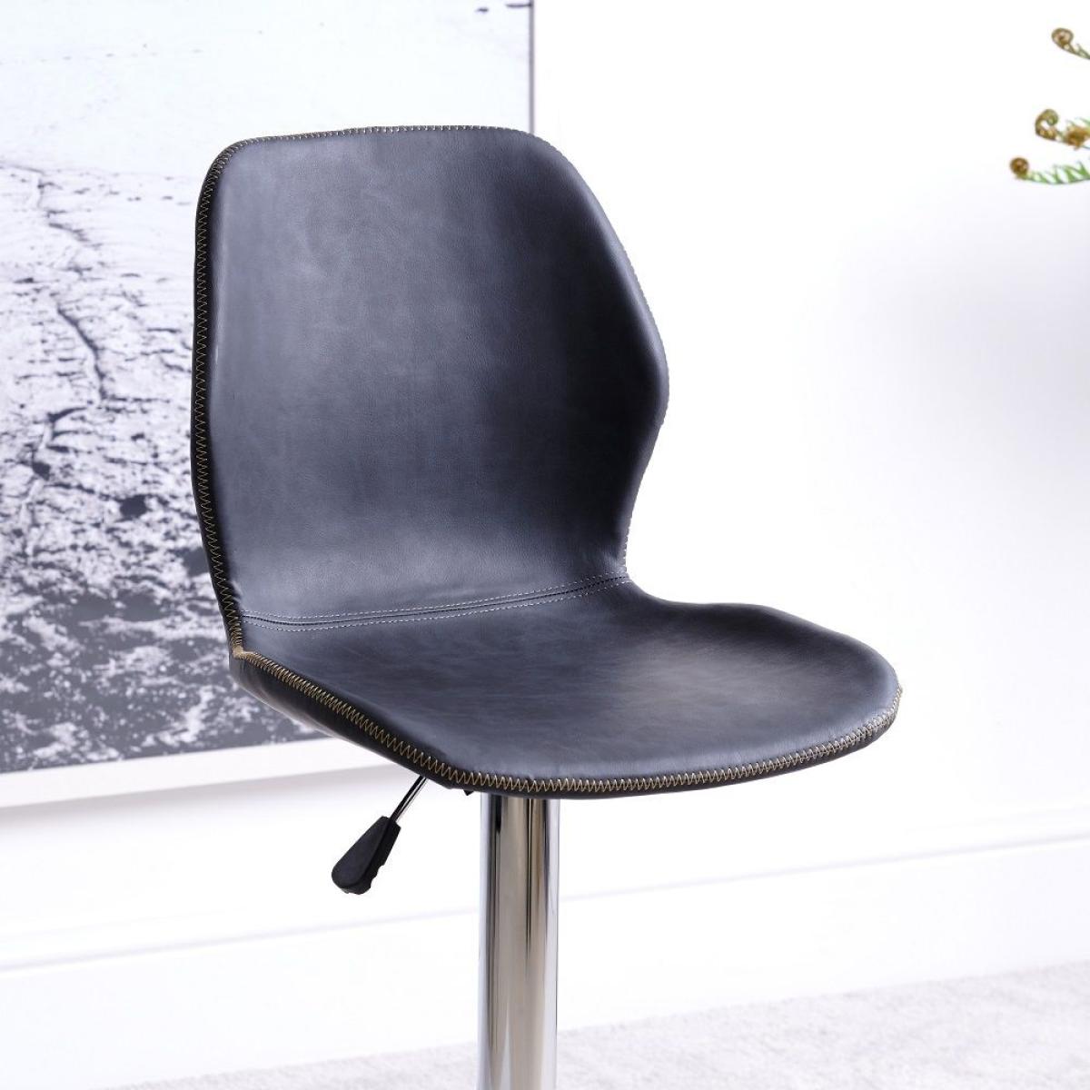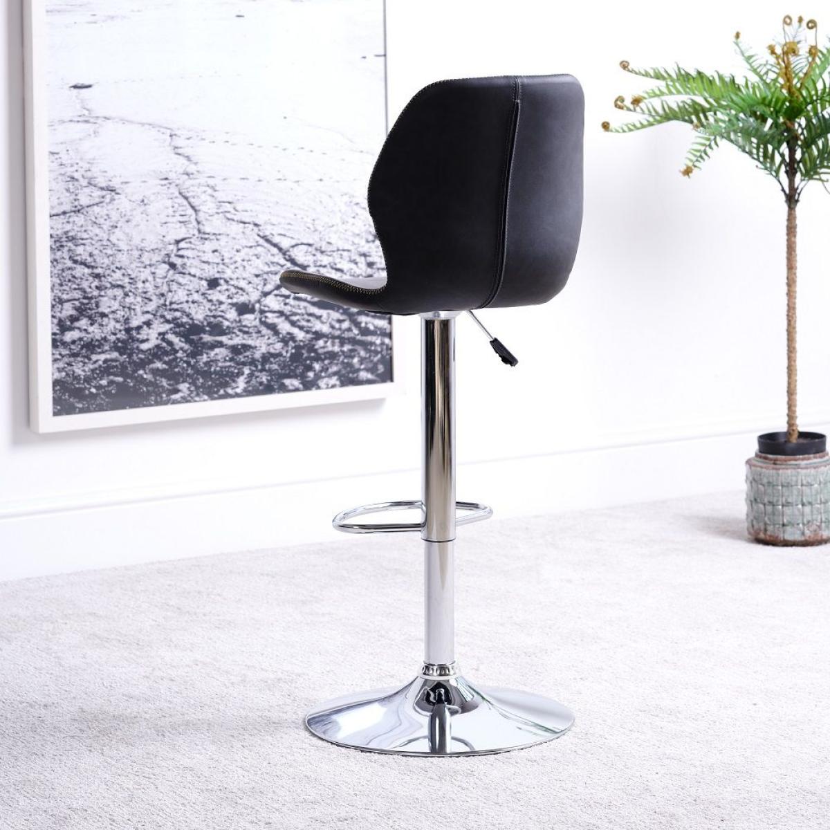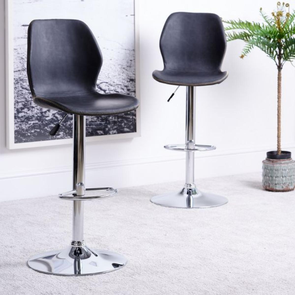 The Laxar Barstool in a sophisticated Dark Grey matt faux leather has a beautifully curved chrome gas lift base, and a very comfortable contoured seat. It would suit a more contemporary kitchen/diner and with it's height adjustment can fit under different breakfast bars at varying heights.