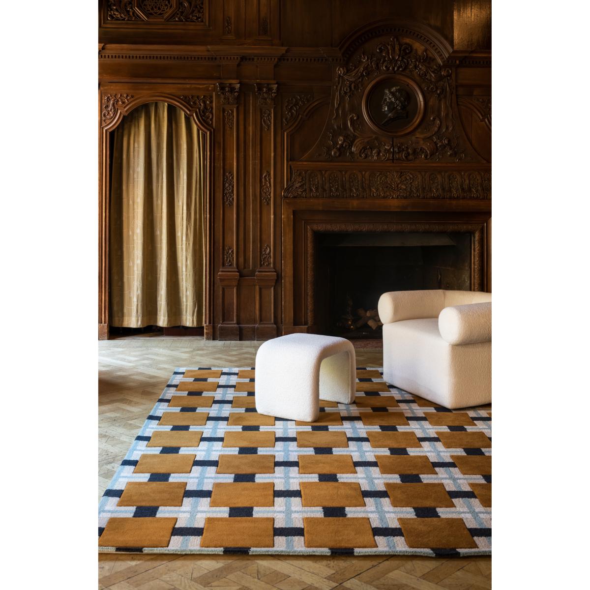 I love this rug because of its bold geometric pattern and warm ochre tones, which bring a confident yet cosy vibe to any space. It works particularly well in contemporary or minimalist interiors, adding visual interest without overwhelming. In more traditional settings, it can act as a lively focal point when paired with neutral furnishings. Practical styling tips include layering it under a simple dining table or sofa to anchor the furniture, and combining it with mustard or earthy cushions and accessories to bring out its colours. Its size and pattern make it versatile enough to fit a variety of rooms, helping to create a welcoming and cohesive look.