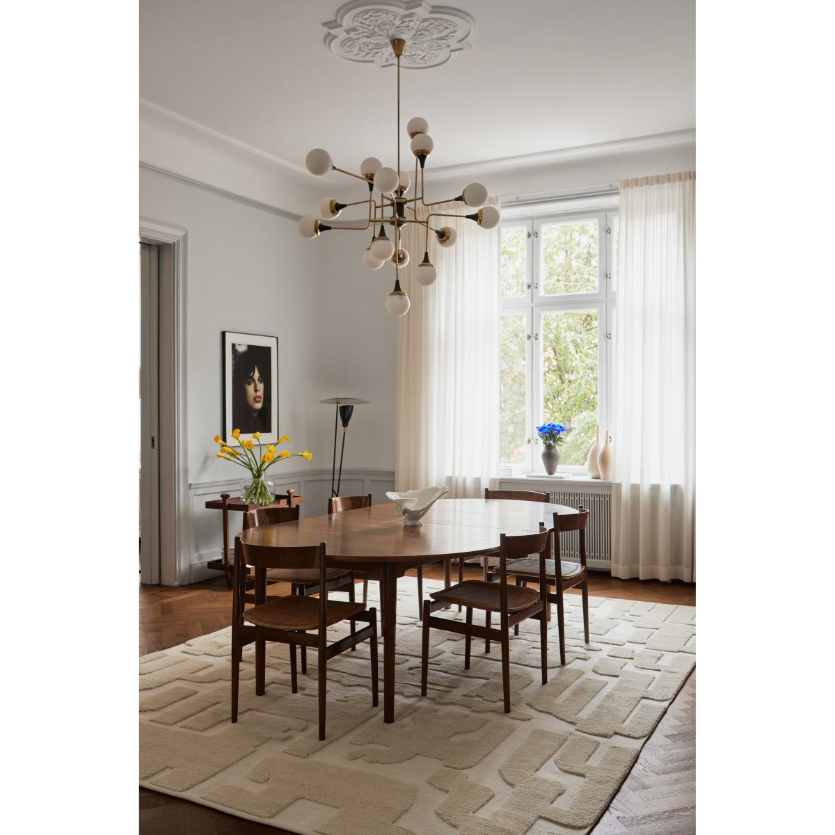 The layered Stig Lindberg Gunnel wool rug in bone white offers a subtle yet sophisticated foundation for many interiors. Its neutral tone makes it incredibly versatile, ideal for contemporary spaces or classic schemes that benefit from a touch of understated elegance. I love pairing it with both soft, plush furnishings and sleek, modern pieces, as its textured design adds depth without overwhelming the room. For practical styling, consider layering it over a hardwood or tactile tiled floor for contrast, and add some textured cushions or throws to enhance its cosy feel. It’s perfect for living rooms or bedrooms looking for a calm, refined atmosphere with a touch of Scandinavian simplicity.