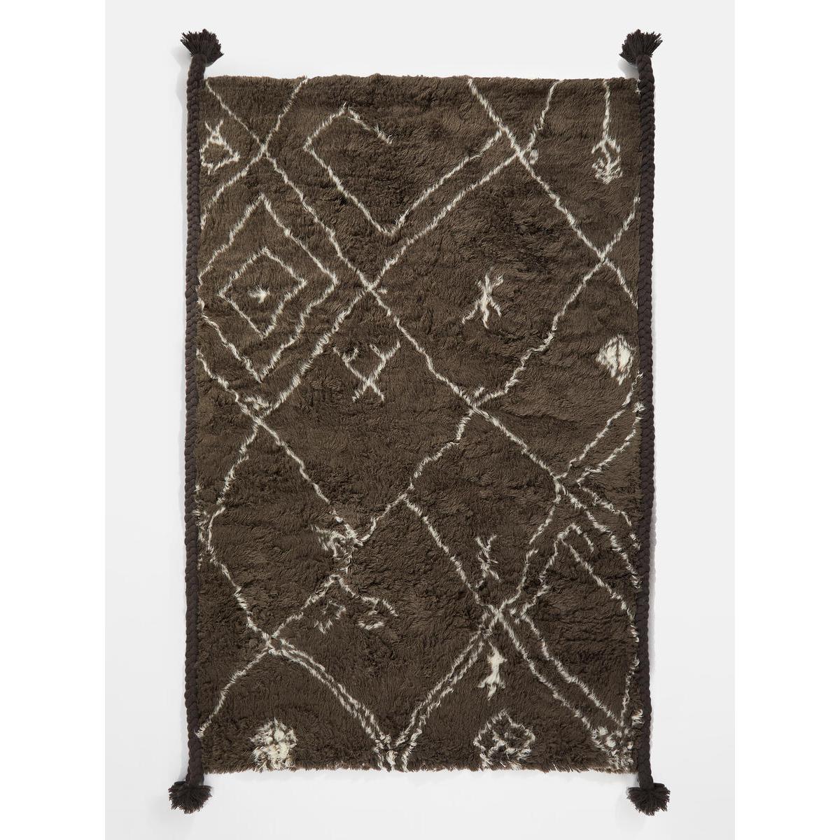 Hand-knotted in India by skilled artisans with 19 knots per square inch, our Layla rug will bring warmth and texture to a space. Inspired by the textured Moroccan rugs at Soho House Berlin, it has a diamond-based monochrome design and a high, shaggy pile that feels cosy underfoot. Hand-knotted Moroccan-style rug Pure New Zealand wool with a shaggy pile Thick pleated edging as an extra detail Handmade in India Inspired by Soho House Berlin