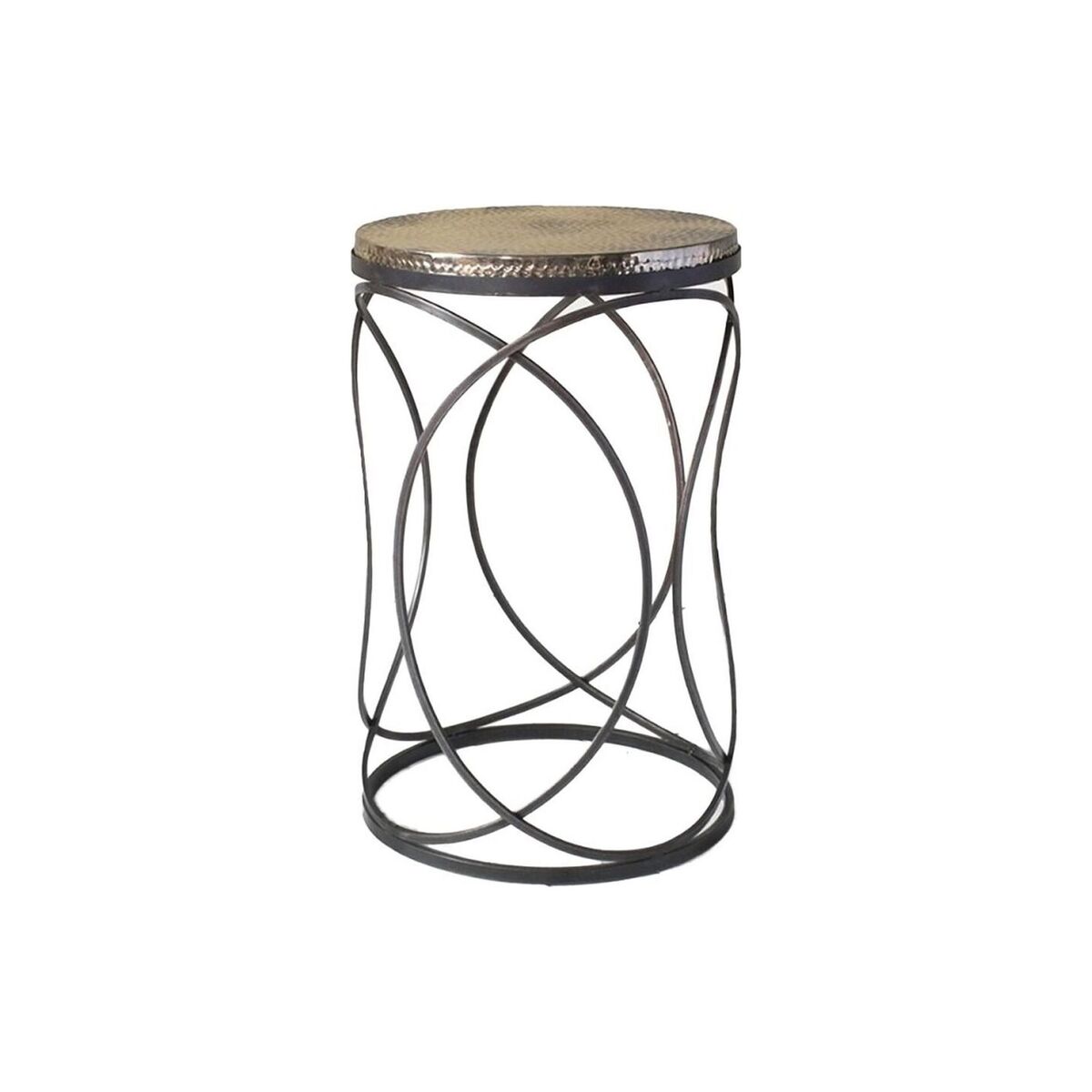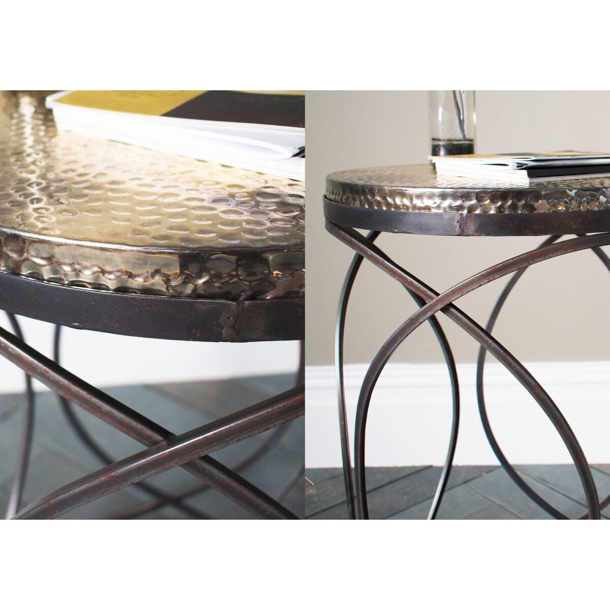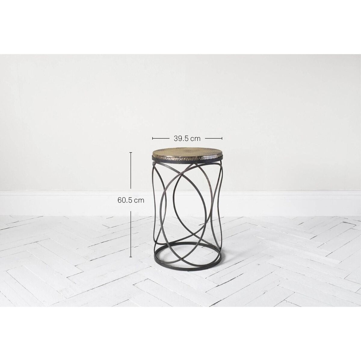 The Layla is a striking metal side table that has a unique hammered top and a striking swirl base that will take centre stage in any space.