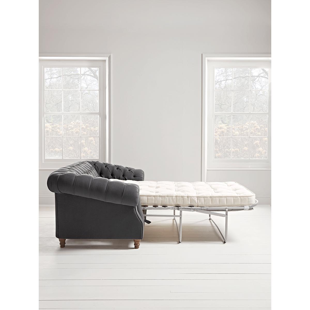 Our Layla Three Seater Sofa Bed is the ideal choice for those who wish to convey a feeling of classic opulence without compromising on comfort. Hand buttoned detailing, roll top back and arms and carved wooden feet speak of elegance and tradition, while feather wrapped seat cushions deliver sumptuous lounging. Our. Layla range. Can be upholstered in a choice of 11 distinctive shades and two fabrics to suit your style; a. Three seater sofa. Is also available. Linen Blend. The classic choice for well designed, handcrafted furniture, a highly durable yet elegant 60% cotton, 40% linen plain weave that showcases form with a wonderfully soft brushed finish. Easy Care Velvet. A highly durable polyester fabric despite its luxurious appearance, Easy Care Velvet is well suited to busy homes, it comes with an outstanding richness of tone and the familiar soft hand feel of velvet. Please note that we have introduced a new polyester velvet to our Custom Made collection which replaces the traditional cotton velvet from our old range. To read more about the qualities of our new fabric, and how it might differ from items previously purchased from the old collection, please refer to our. Upholstery FAQs. For further information on the range, please select one of the following:. Order a fabric swatch. Read our Upholstery FAQs. View our full Upholstery Terms and Conditions.