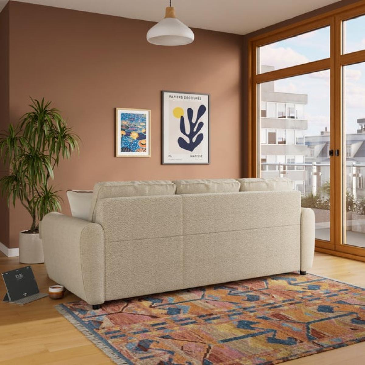 The Layton Boucle Corner Trundle Sofa Bed is a versatile piece that combines comfort with practicality, making it ideal for both everyday living and hosting guests. I love how its neutral boucle fabric adds texture and warmth to a room, allowing it to blend seamlessly with contemporary, Scandi, or even mid-century interiors. It works particularly well in open-plan living spaces or apartments where maximizing seating without sacrificing function is key. For styling, consider adding a few throw cushions in contrasting colours or textures to elevate the look, and keep the surrounding accessories minimal for a clean, modern feel. Additionally, its corner design helps define the space, making it perfect for cosy family rooms or informal living areas.