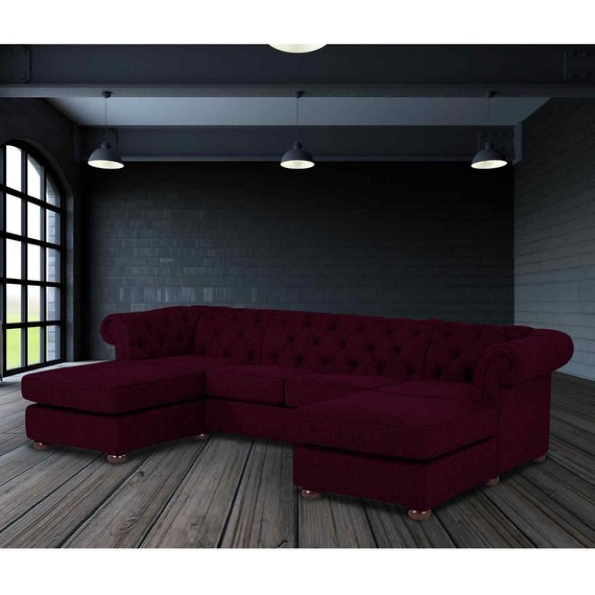 Layton Chesterfield U Shape Sofa with 2 Footstools - Red