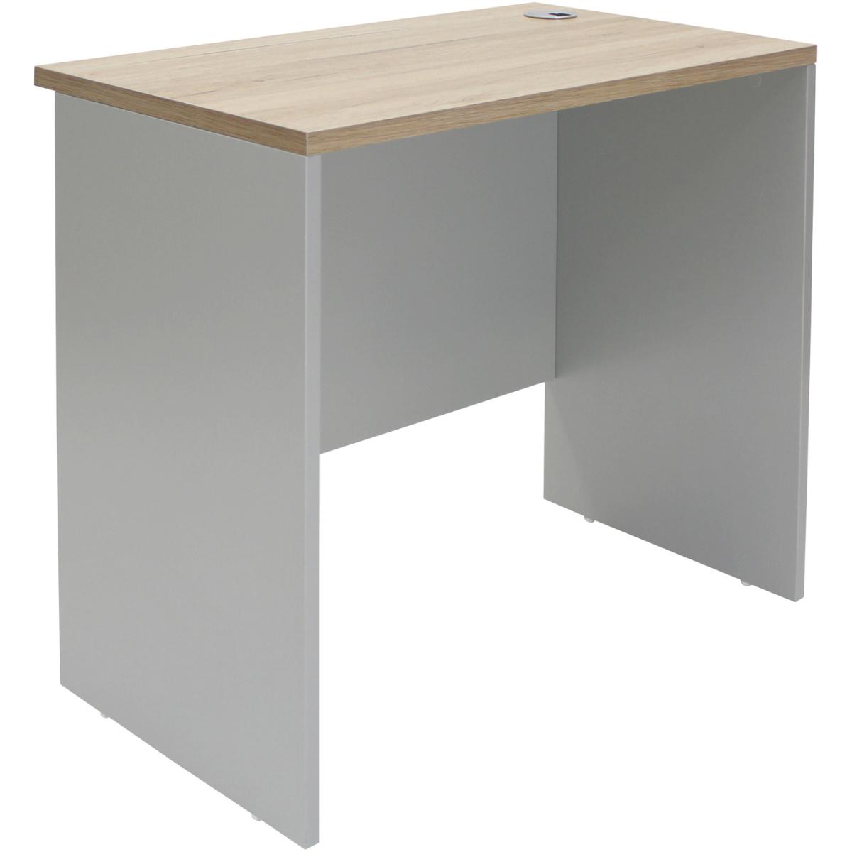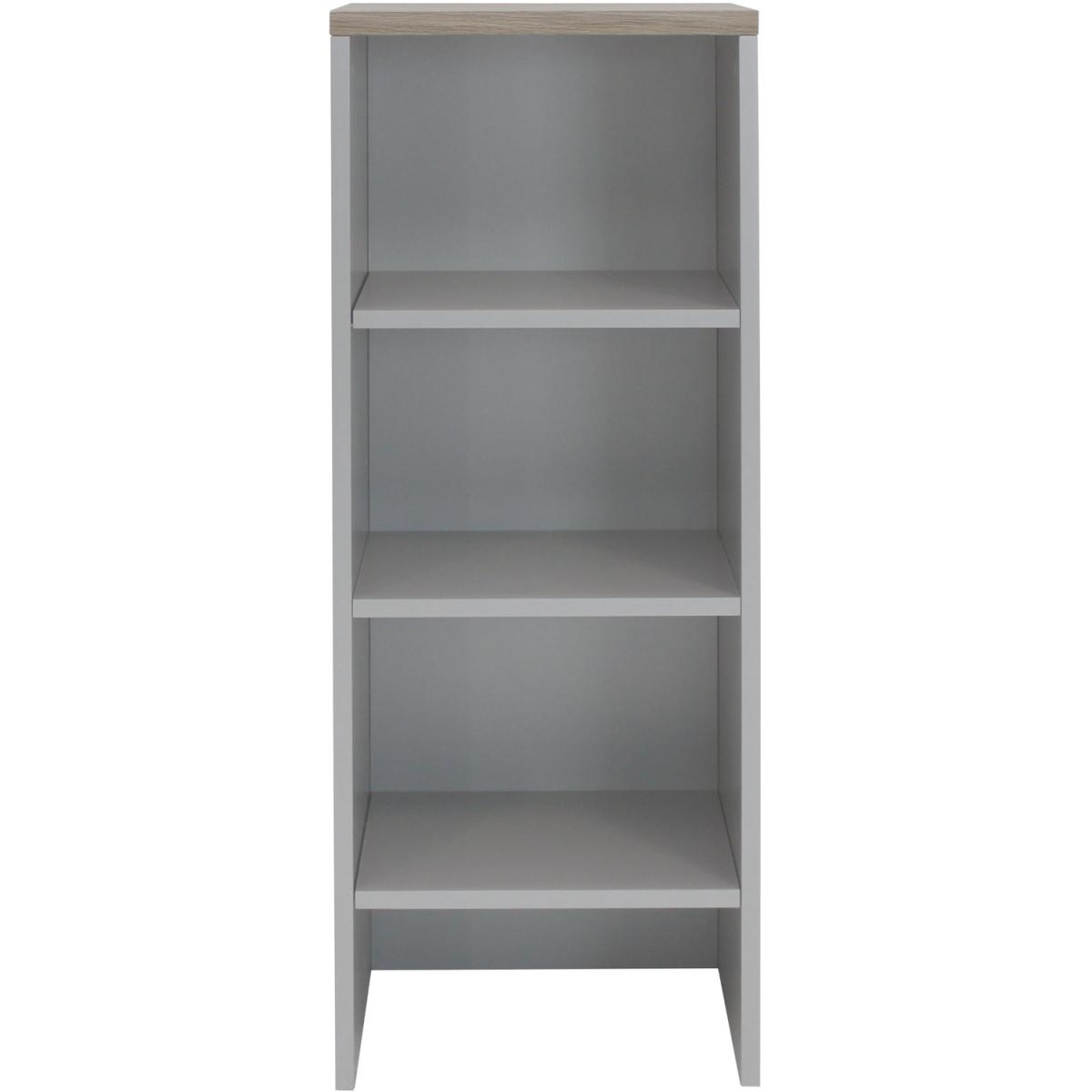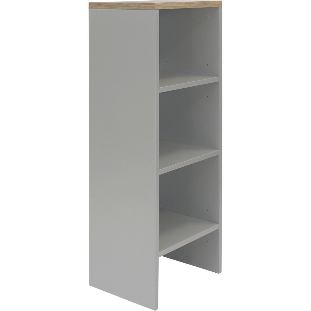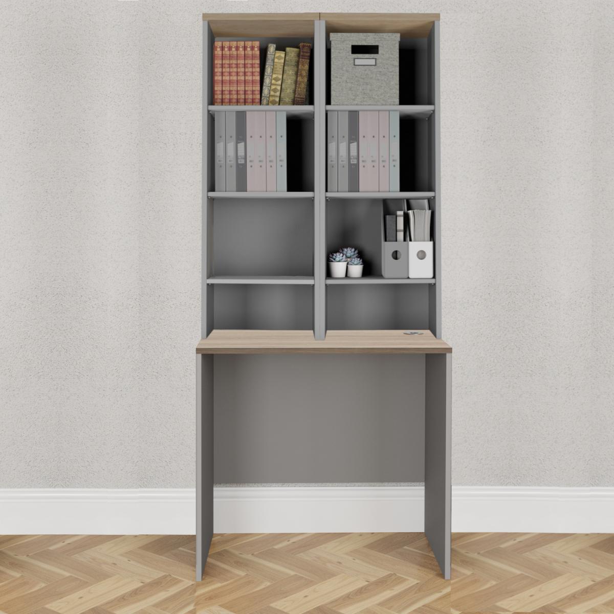 An attractive, modern styled, ready to assemble, practical desk and two surface mounted bookcases. Manufactured in a stylish Light Grey Painted Effect with Light Oak Effect Tops or a Smoked Oak Effect. The top overhang at the back takes into consideration skirting boards and helps to create a fitted look. Adjustable foot levellers are utilised to allow for uneven floors. The desk needs to be positioned against a wall. The combinations provide a great working space and practical storage solutions. This creates an innovative solution to working from home, creating a stylish, professional workspace for all the family to enjoy.