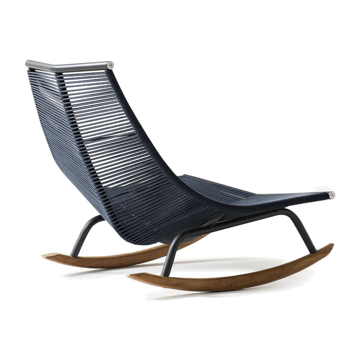 Gordon Guillaumier's Laze 003 Rocking Chair in a smoke and blue colourway is produced by outdoor expert RODA, perfect for long days lounging under the summer sun. Specially designed for the outdoors, the chair features a smoke-hued tubular steel frame for elevated resistance against corrosion. Strikingly contemporary, its structure is complete with weatherproof Italian-made cords, woven in a double polyester twisted thread with cotton finishing. Award-winning designer Gordon Guillaumier, one of RODA's acclaimed art directors, is inspired by his five senses to create his innovative designs. Aspiring to capture the feelings that enhance his mood, Guillaumier reimagines his sensorial inputs as striking, contemporary design pieces.