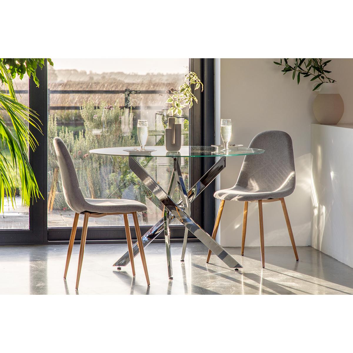 I’m a fan of the Laze chairs for their clean, pared-back silhouette and the way the light grey upholstery sits against the oak legs. They work equally well in Scandi-inspired, contemporary or even modern farmhouse schemes, and their slim profile makes them ideal for both compact and open-plan dining areas. For styling, pair them with a simple oak or white table and introduce texture through a woollen seat pad or small cushion in muted tones. You can also mix in a couple of contrasting chairs at the ends of the table for a more relaxed, eclectic feel.