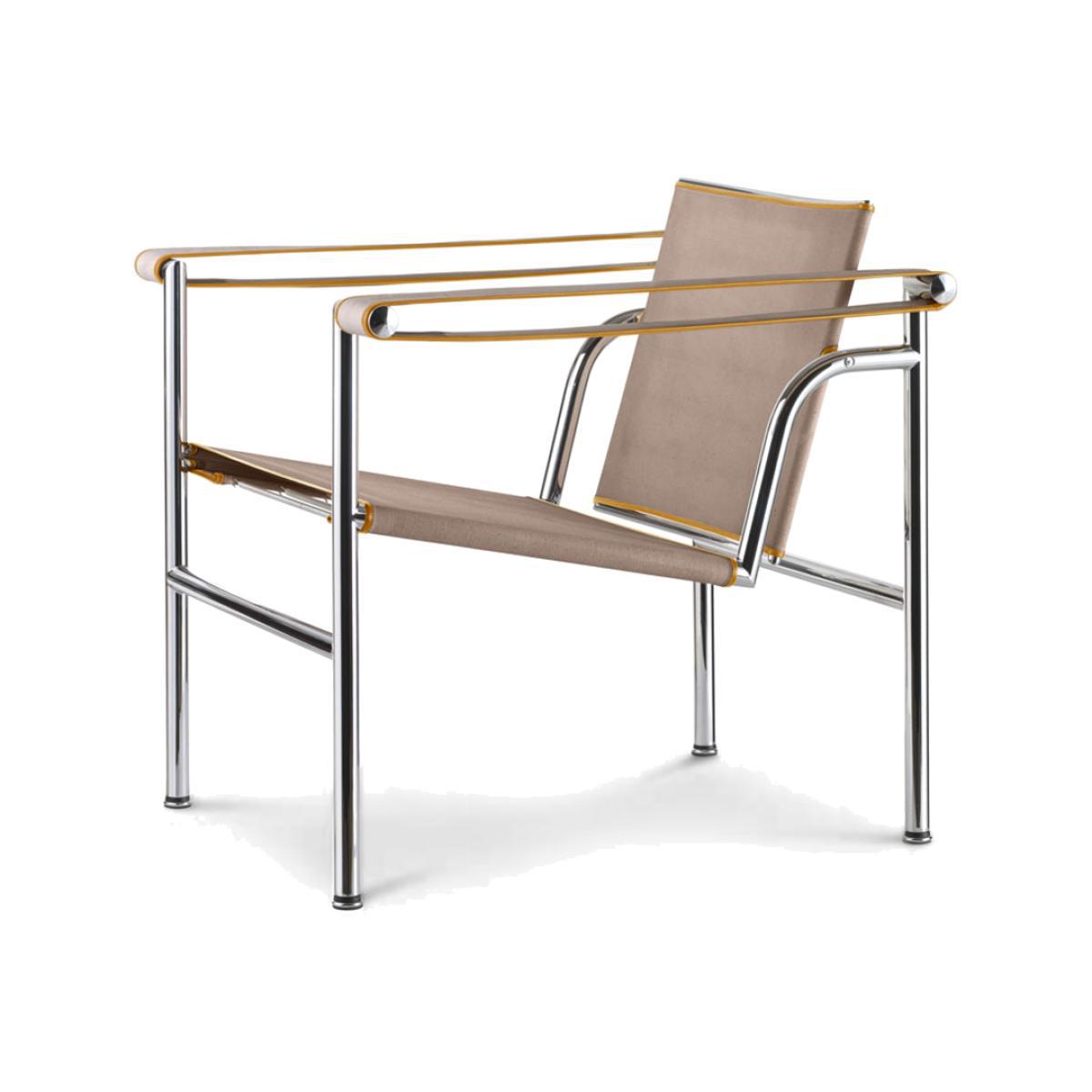 Revive your interiors with the LC1 UAM Armchair in polished trivalent chrome plated steel and ecru canvas, a design classic by Le Corbusier, Charlotte Perriand and Pierre Jeanneret for Cassina. Originally designed for the 1930 exhibition of L'Union des Artistes Modernes, this timeless modernist design only entered production in 2011. Also known as the Basculant Chair, the chair's sculptural shape and comfortable arm rests mean it is undoubtedly ahead of its time. Crafted from a chromed tubular steel frame that supports the leather edged natural canvas sling seat and arm rests, the LC1 UAM Armchair is lightweight and perfectly balanced. The taut back rest and seat offer optimal comfort thanks to the visible tubular steel springs that support it. With its machine-age materials and lack of ornamentation, the 1928 LC1 UAM Armchair, manufactured by Cassina, is a classic example of the refined functional aesthetic that was embraced by such designers as Le Corbusier, Charlotte Perriand and Pierre Jeanneret. Part of the Cassina I Maestri collection, the LC1 UAM Armchair is a certified original design. Each armchair is marked with the designers' signatures and the Cassina I Maestri logo, alongside the production number and identity card.