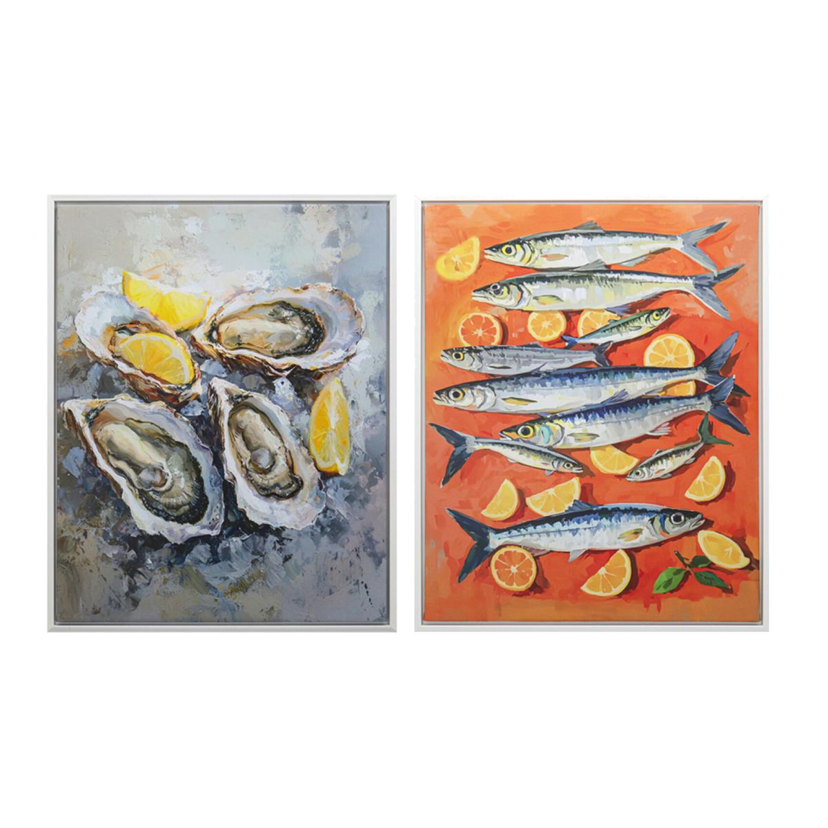 I think this fishy wall art is a great addition for coastal or seaside-inspired interiors, but it also brings a fresh, energetic vibe to modern or minimalist spaces. The vibrant colours and playful design work well as a statement piece, especially when paired with neutral backgrounds or simple furnishings. For styling, consider hanging the two artworks together in a kitchen, dining area, or even a bathroom to add a pop of colour and personality. To elevate the look, you could complement it with seaside accessories like shells or nautical decor, or keep it as a bold focal point on a feature wall. It’s versatile enough to be layered with other artwork or kept solo for maximum impact.