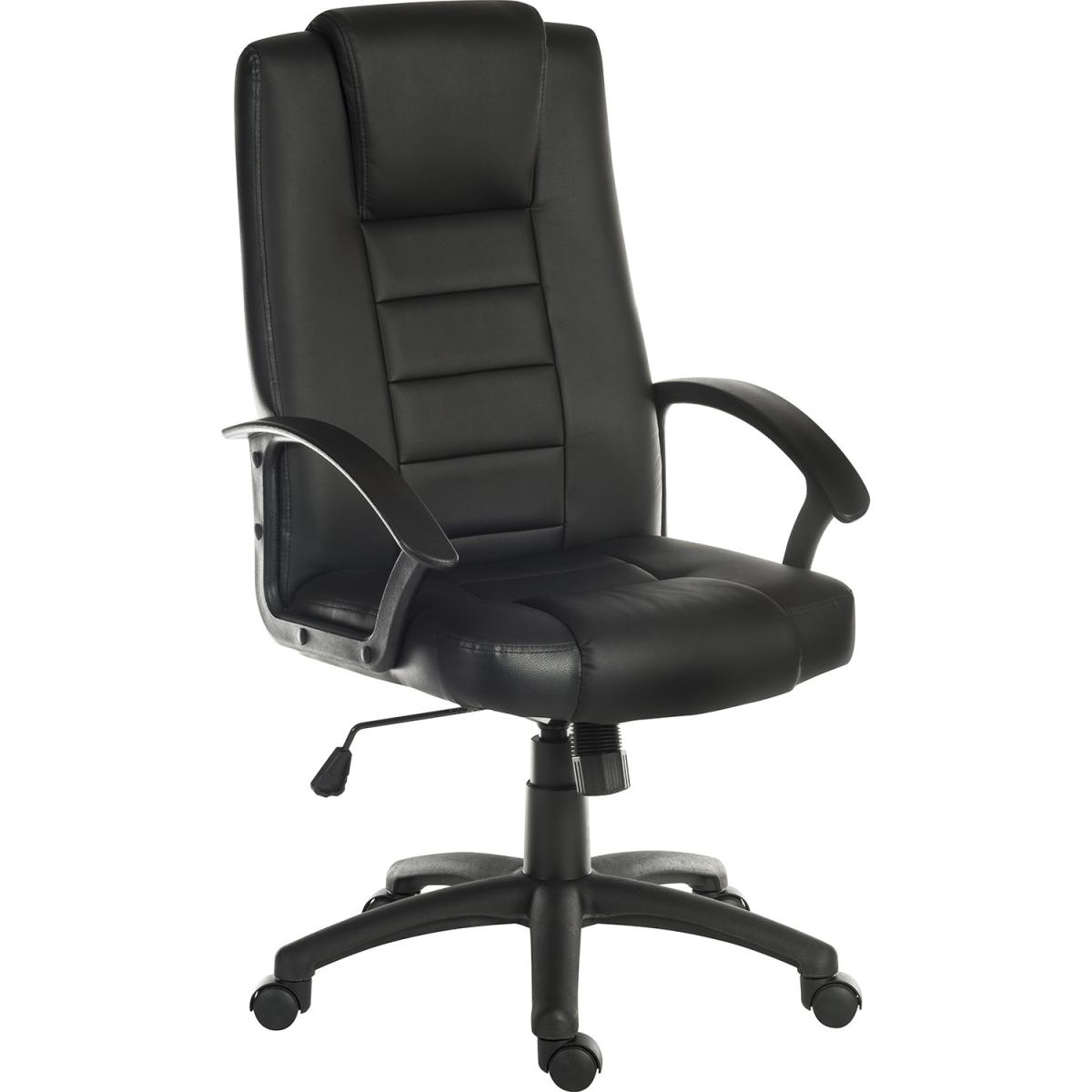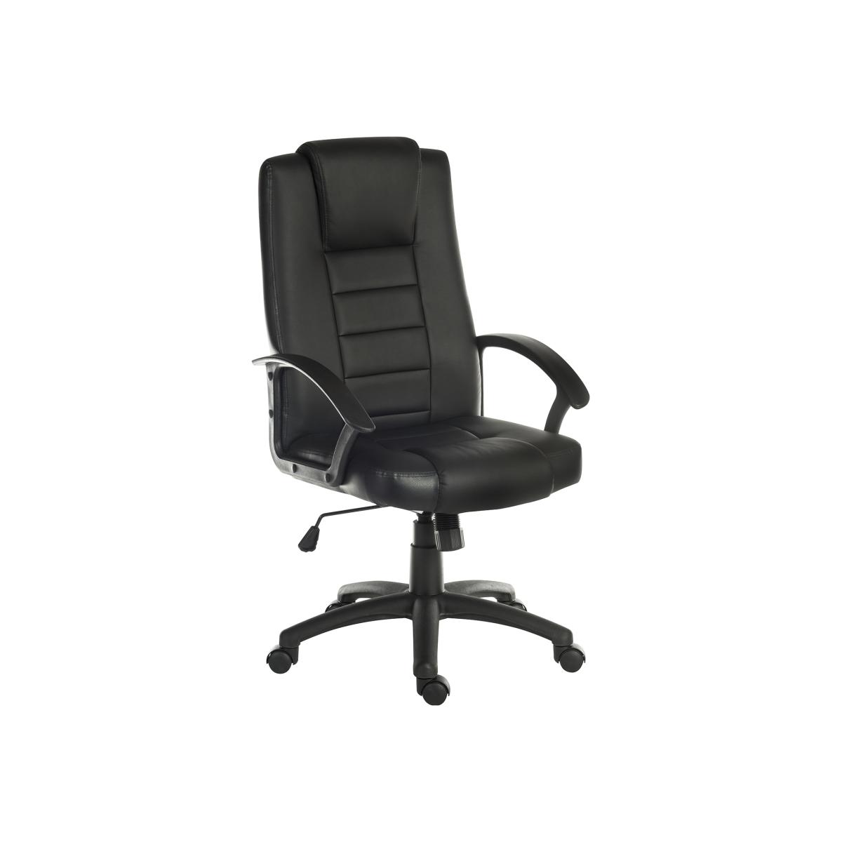 A smart seating choice for your home office or workplace, the Leader Executive Chair emanates a suave and sophisticated air. Upholstered with black bonded leather, its padded seat and backrest feature extra cushioning on its headrest and a curved armrest on each side for maximum comfort. Set atop five castor wheels for easy maneuverability around your workstation and a gas-lift mechanism for adjusting the seat height to suit you, this office chair is the perfect choice for comfort and style while you work.