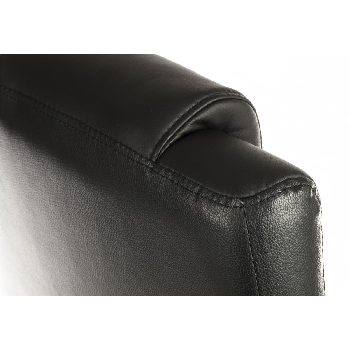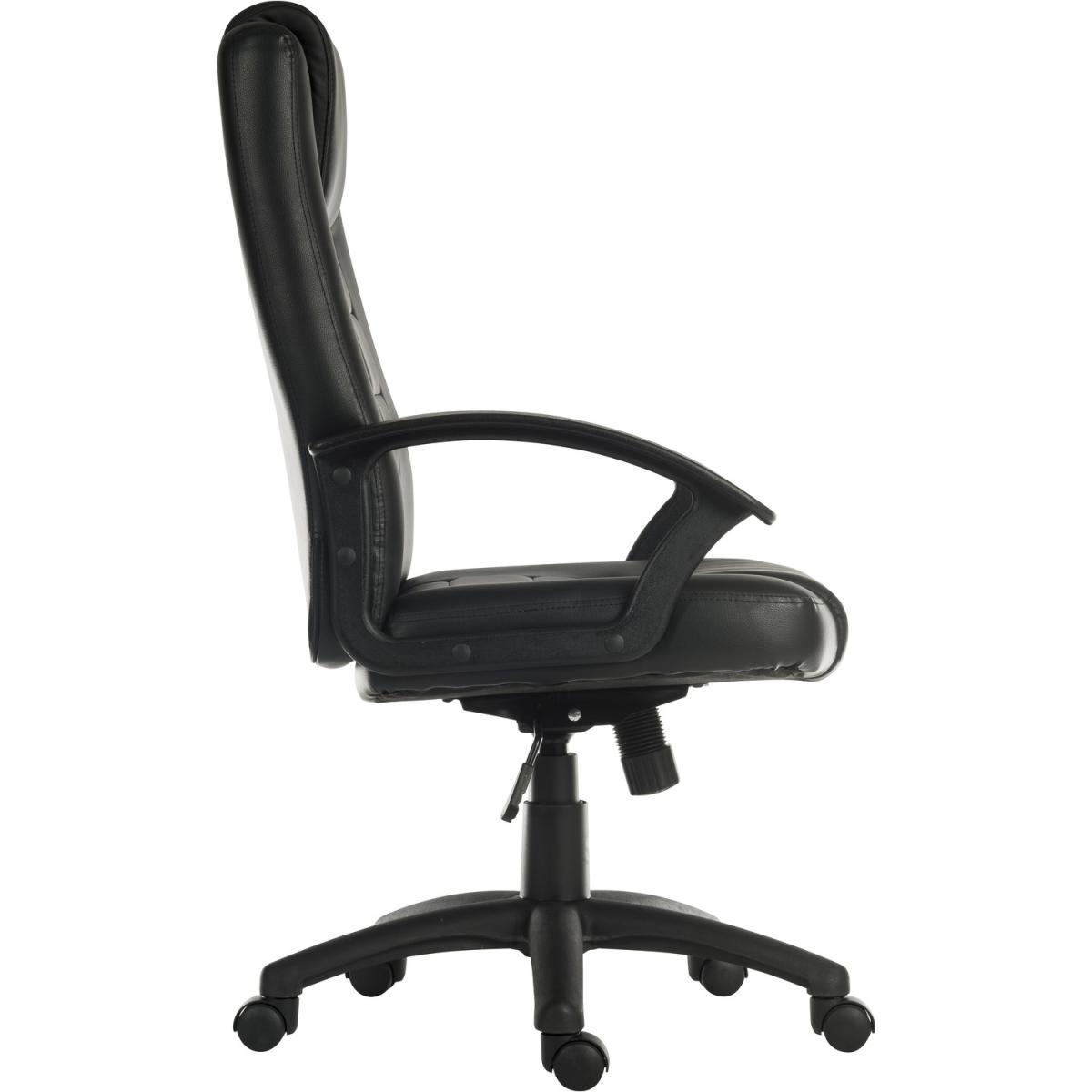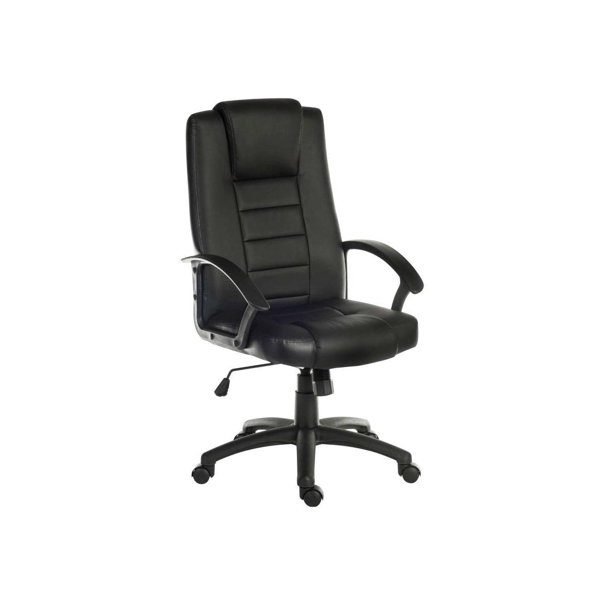 I love this “leader” chair for its sleek faux leather finish, which offers a polished, professional look that’s easy to maintain. It works particularly well in contemporary or minimalist offices, adding a touch of sophistication without feeling overly formal. Practical styling tips include pairing it with a glass or metal desk for a streamlined setup, or softening the space with plush textiles like a textured rug or subtly patterned curtains. Its neutral black colour makes it versatile, so it can blend seamlessly into various colour schemes while still making a statement of comfort and authority.