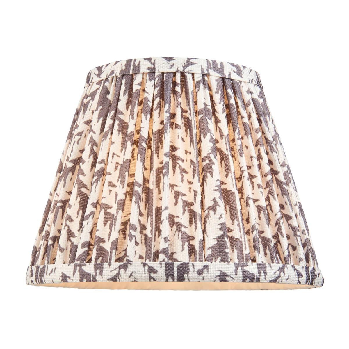 20cm tapered shade with white gimbal. Unique leaf pattern design in a subtle pearl grey colour with taped edge detailing and plain inner lining. Perfect when paired with one of our beautifully decorative table lights, wall lights or chandeliers.