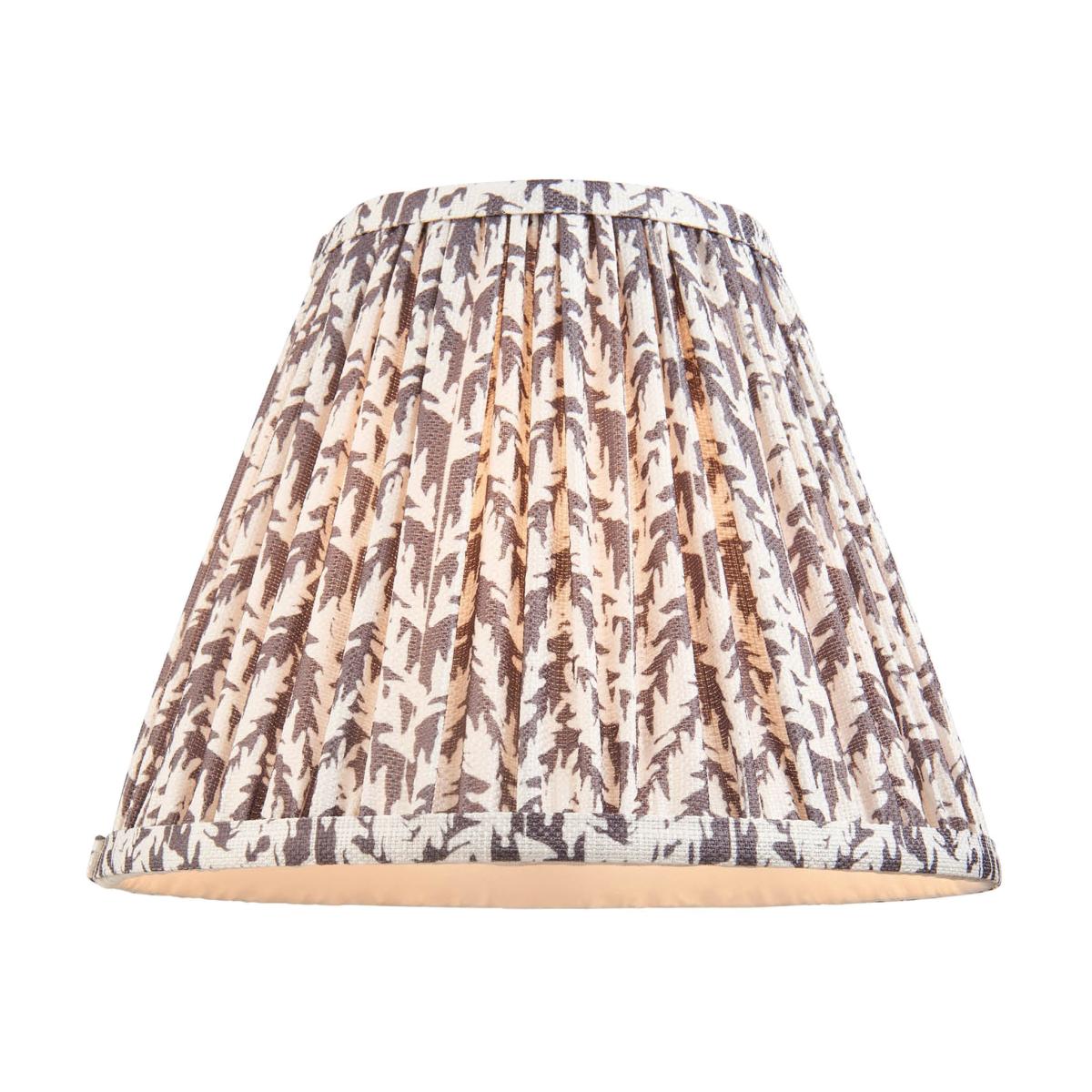 25cm tapered shade with white gimbal. Unique leaf pattern design in a subtle pearl grey colour with taped edge detailing and plain inner lining. Perfect when paired with one of our beautifully decorative table lights.