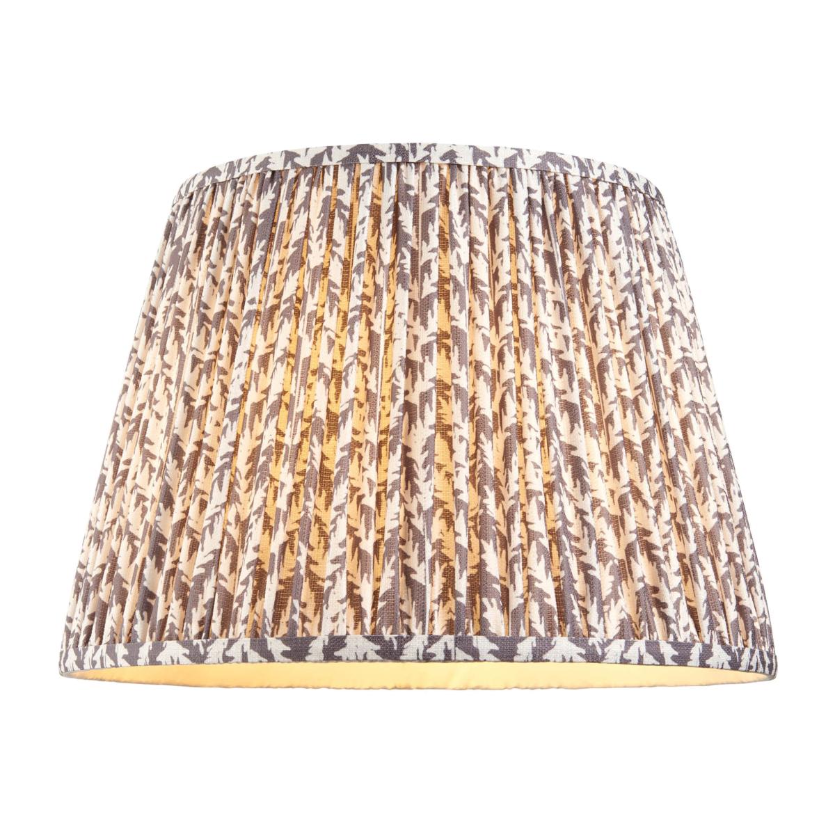 40cm tapered shade with reversible white gimbal. Unique leaf pattern design in a subtle pearl grey colour with taped edge detailing and plain inner lining. Perfect when paired with one of our beautifully decorative floor lights and cable sets.