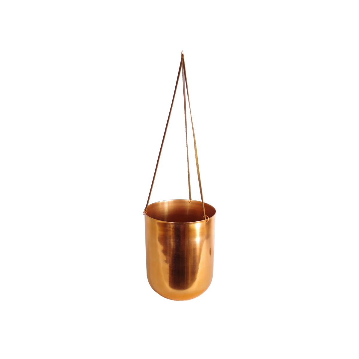 Leaf Copper Hanging Planter with a beautiful shiny polished copper finish. Has thin leather straps with a lightweight 'S' Ring hook to hang at the top. The inner diameter of the planter is 17cm, so this is quite large and will fit almost all our plants. This looks particularly good with our artificial ferns (available separately). These planters are all handmade in a rustic finish with intentional minor imperfections. As all these planters are hand made there are minor differences from one to another and each one is slightly unique. Intended for indoor use.
