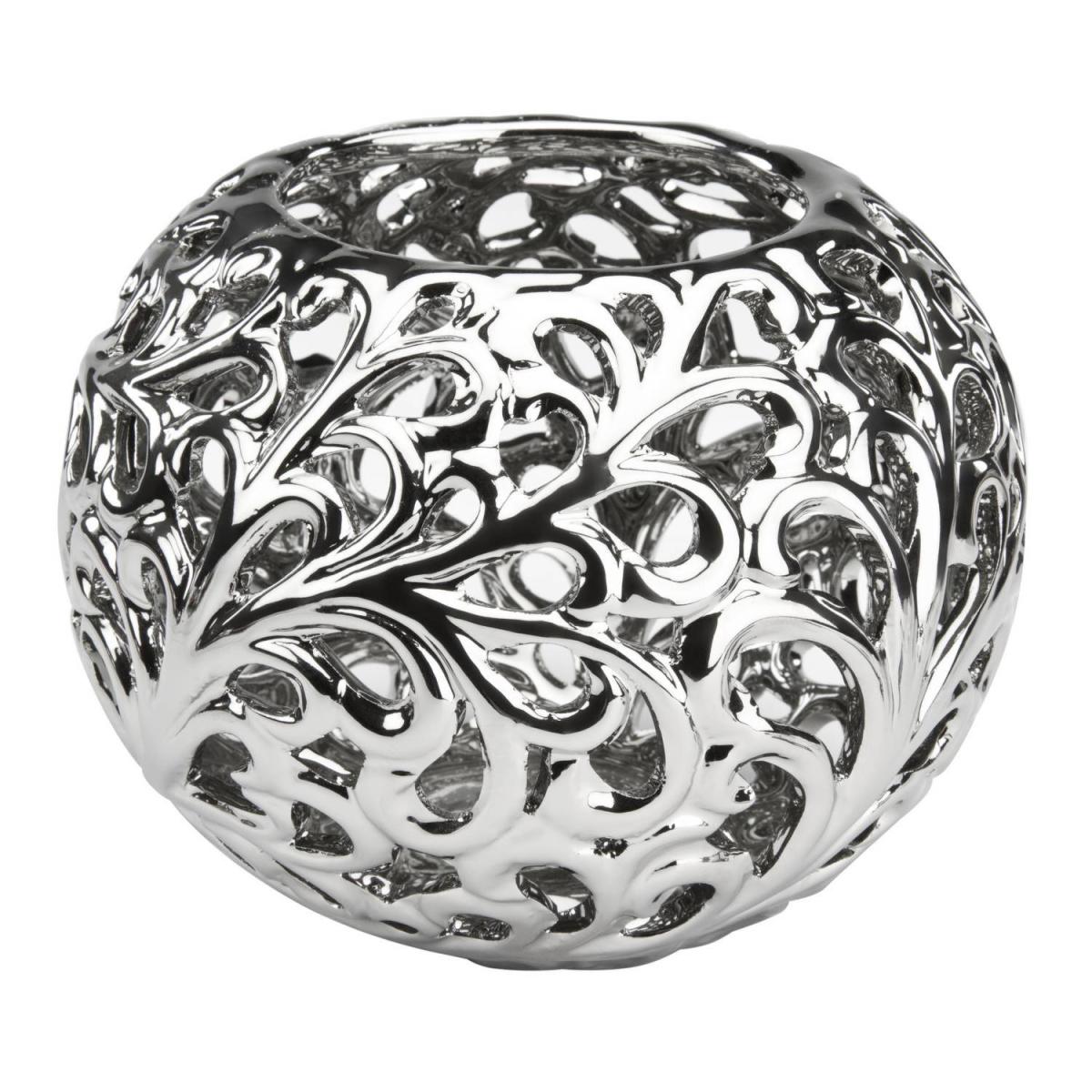 Exuding modern elegance, the Leaf Cut Out Candle Bowl is sculpted into a sphere from swirls of leaves in a high-gloss silver. Perfect for displaying a tea light, as its open shape allows the warm glow to emanatate out, this ornamental piece also makes for a stunning standalone decoration.