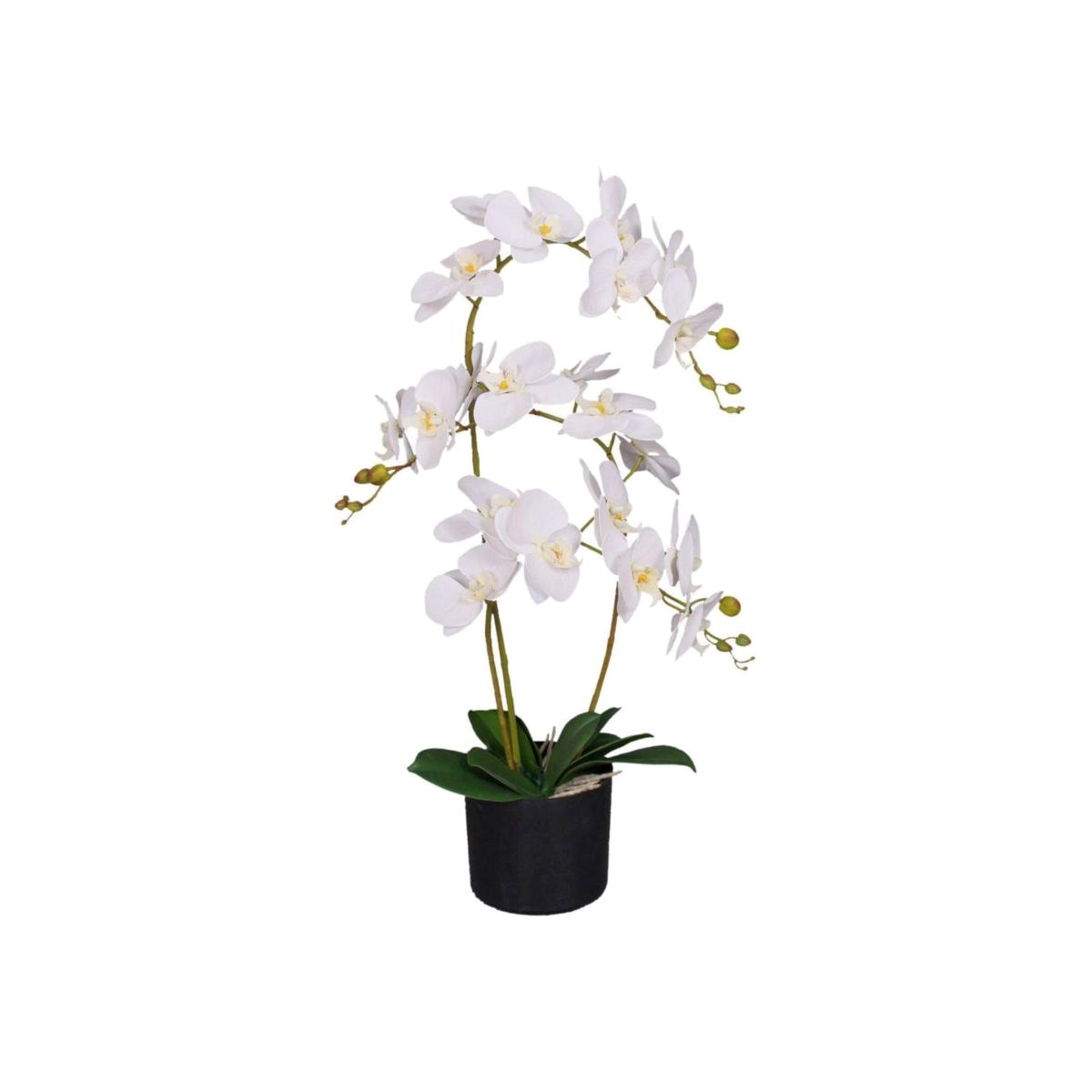 Leaf Design UK Realistic Artificial Orchid Flower Display in Pot - White