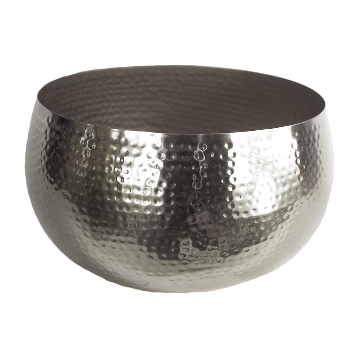 Extra large metal bowl. Can be used for display or plants. This metal planter measures 32cm wide x 20cm high. It is made of metal with a hammered finish. The inner diameter is 30cm (so this will fit any plants and looks brilliant as a centerpiece with multiple plants inside). These planters are all hand made in a rustic finish with intentional minor imperfections. As all these planters are hand made there are minor differences from one to another and each one is slightly unique. The price is for the planter only- but we have included some pictures to show how this would look with a couple of our plants to give an idea of size (plants shown are all available separately). We have this style of planter available in a range of colours and sizes and it is also available with a smooth or curved top edge. Intended for indoor use only.