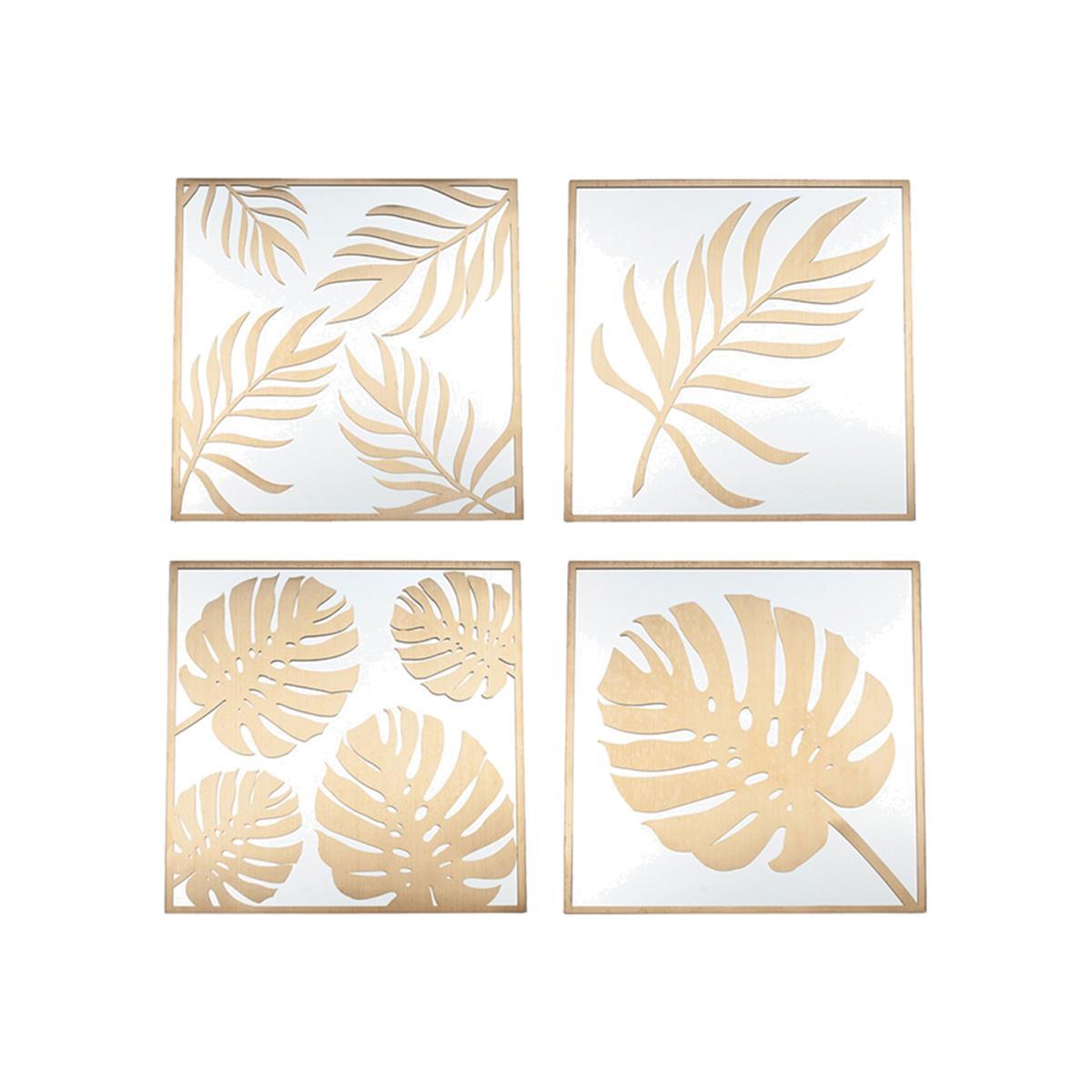 Design. Combining opulence with nature, the Leaf Wall Art Set of Four is the perfect accessory to add glamour to your living space, dining area or bedroom. The glass background with eye-catching gold metal leaf design is sure to grab attention, finished beautifully with a thin gold metal edge. Dimensions shown are for each individual square shown in this collection of four pieces.
